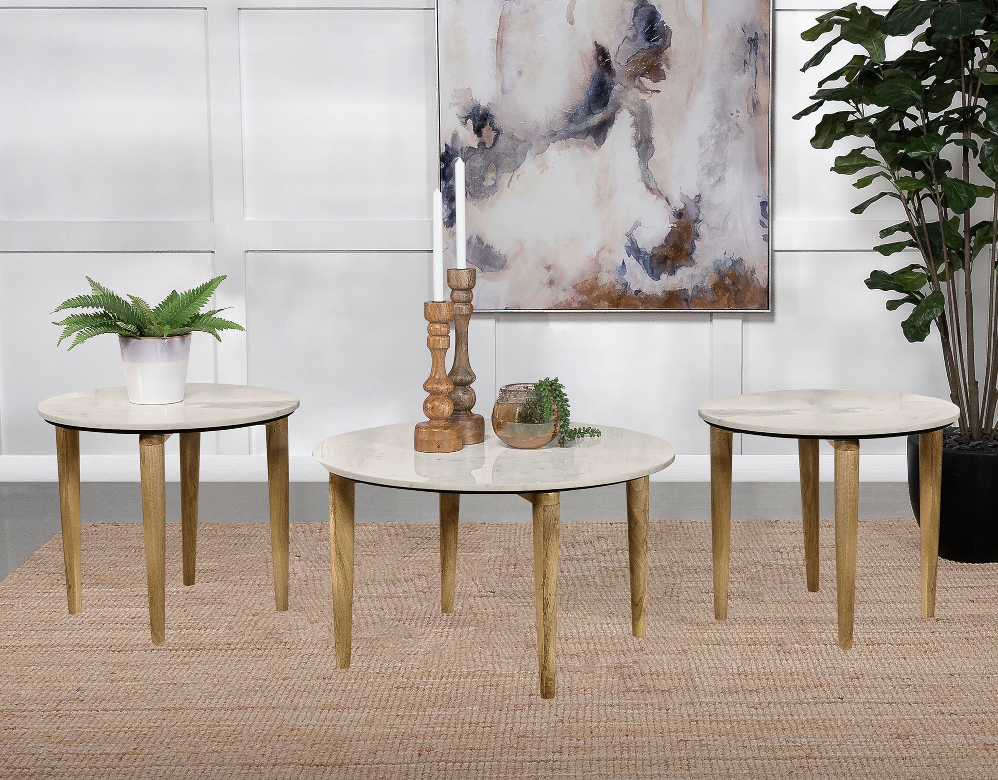 • Juego de mesa de centro con tapas redondas de mármol para una apariencia sofisticada.