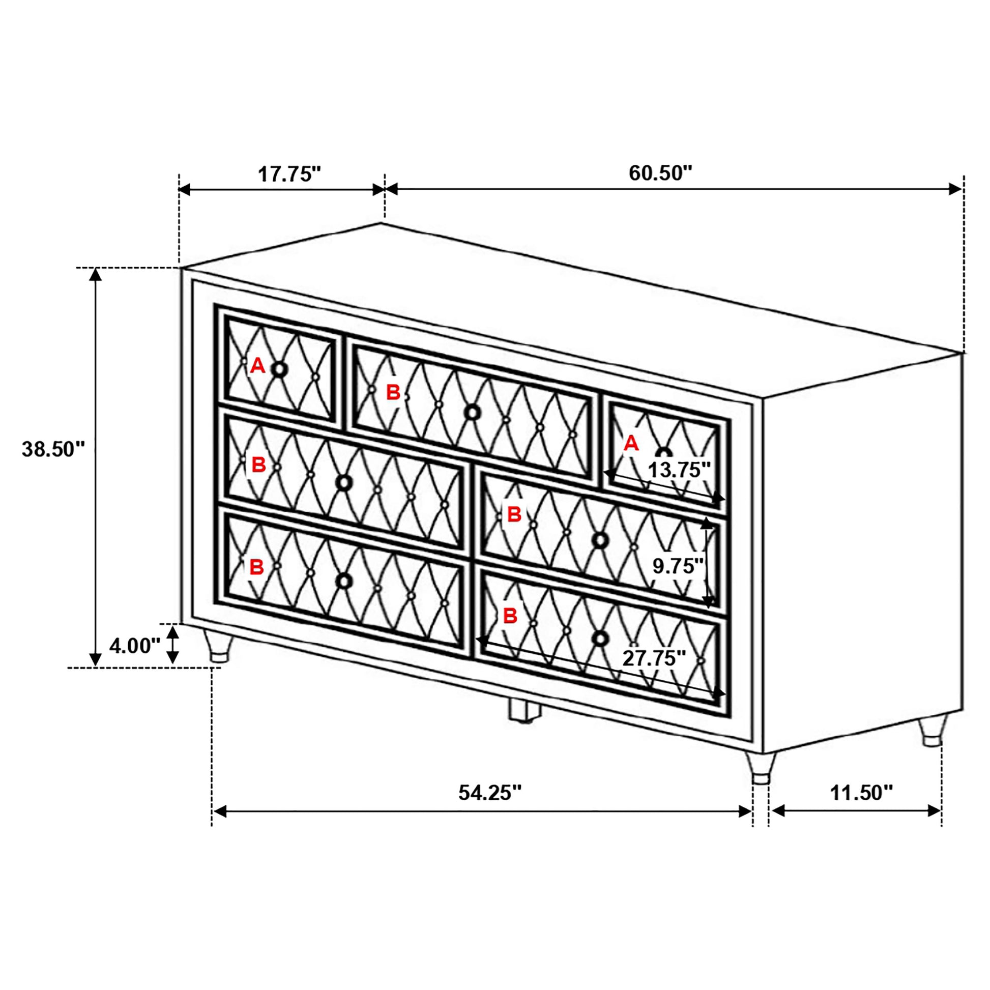 • Las piezas de almacenamiento incluyen una amplia capacidad de cajones y herrajes de cristal exclusivos.