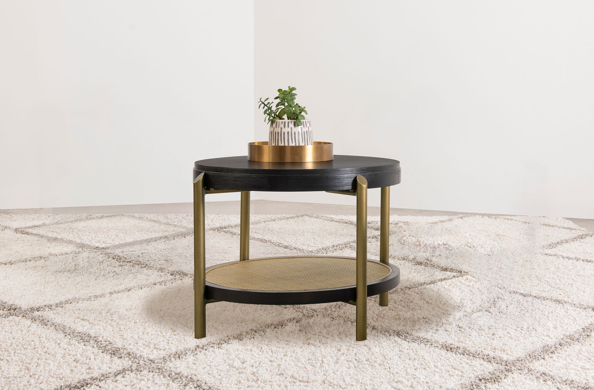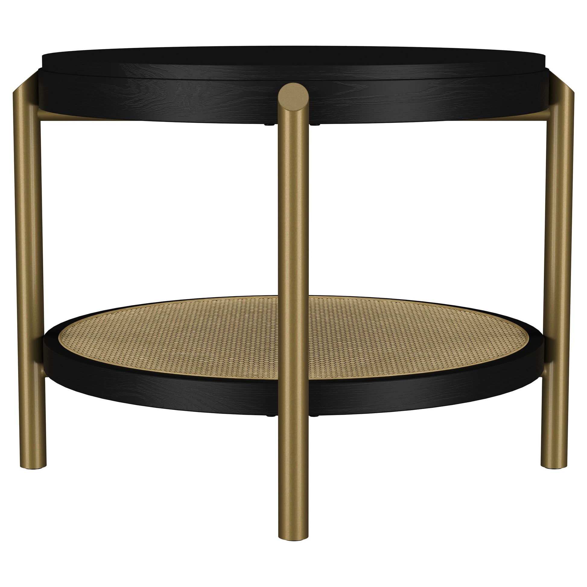 Mesa auxiliar redonda Arini con estante de almacenamiento, color negro