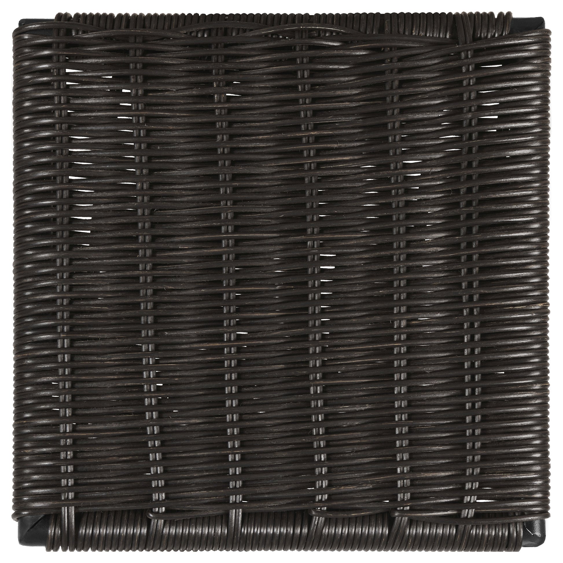 • Complemento con un toque táctil: un asiento de ratán sintético tejido a mano en color marrón sobre una silla de comedor de transición con marco de metal negro.