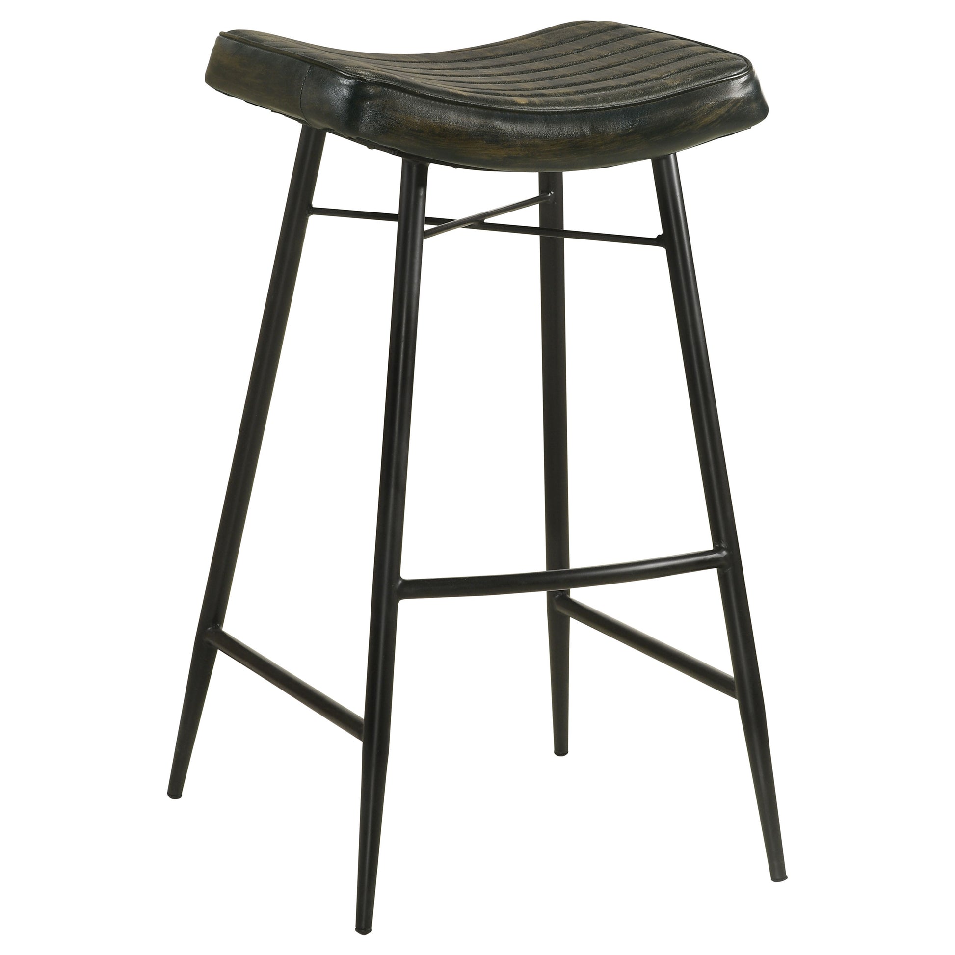 • Agregue un toque de estilo clásico a su cocina o bar con un taburete sin respaldo con una rica tapicería de cuero antiguo y capitoné con canales.