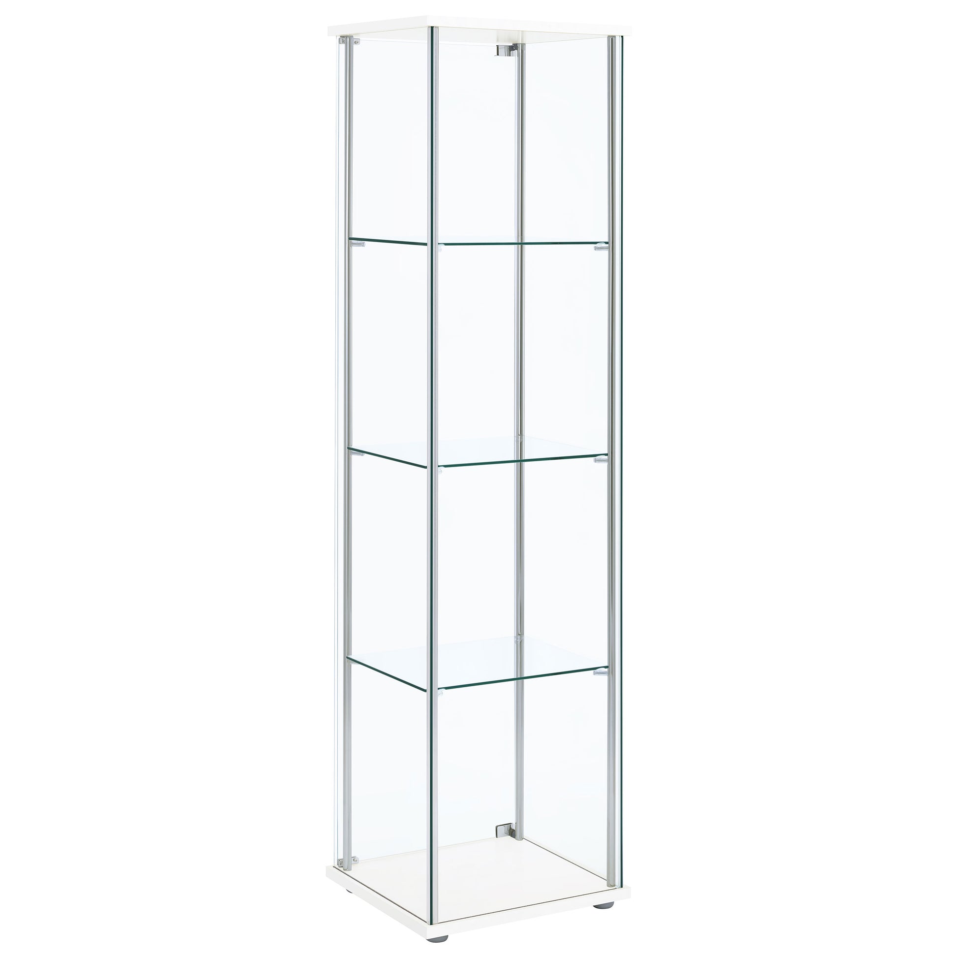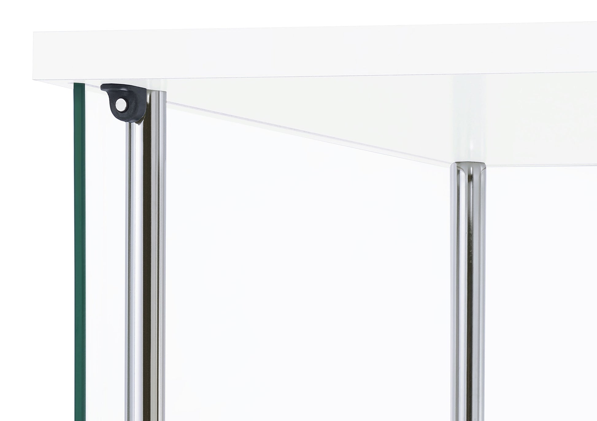 • Tres estantes de vidrio templado transparente brindan resistencia para sostener sus artículos de exhibición.