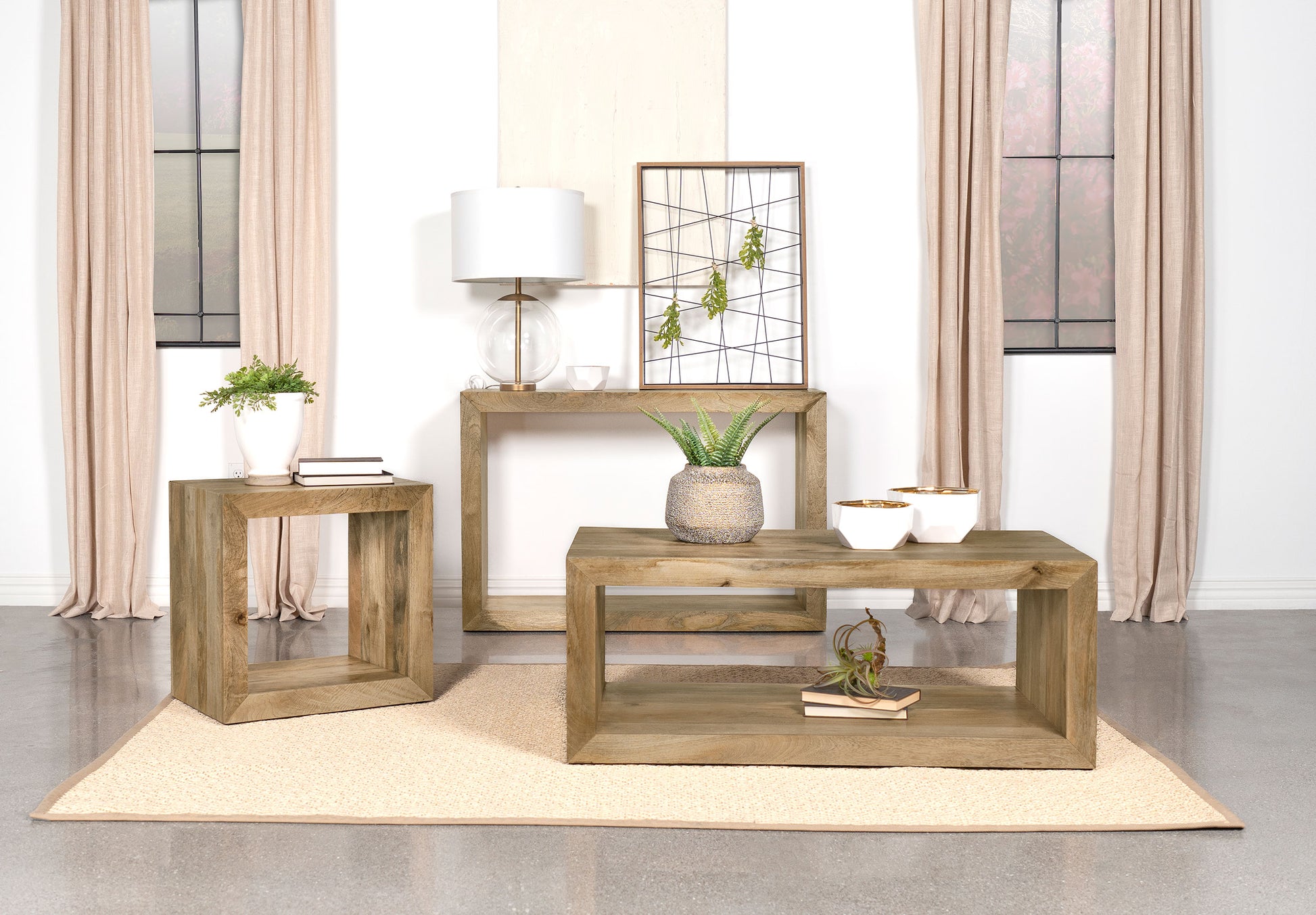• Mesa de centro rectangular bellamente hecha de madera maciza de mango para mayor durabilidad.