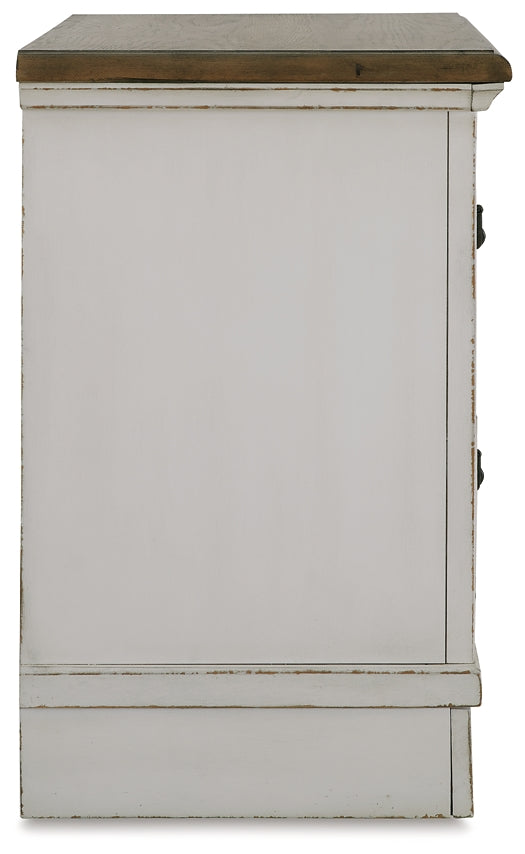 | Detalles | Fabricado con maderas duras macizas, chapa de madera seleccionada y sustrato de MDF, acabado de dos tonos (madera blanca astillada y marrón), frentes de cajones y pilastras perfilados, moldura de cintura, herrajes de metal con acabado en tono bronce oscuro, 2 cajones de deslizamiento suave con interiores completamente terminados, construcción de cola de milano y guías laterales de metal con cojinetes de bolas (cajón superior forrado con fieltro), requiere ensamblaje | |