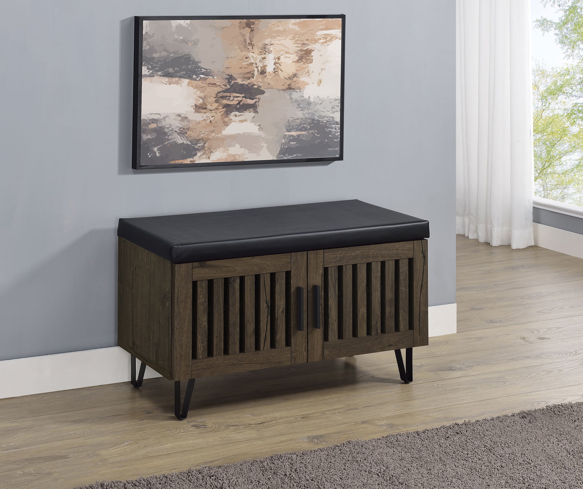 Banco de entrada acolchado para zapatos Brixton de 2 puertas en roble ahumado
