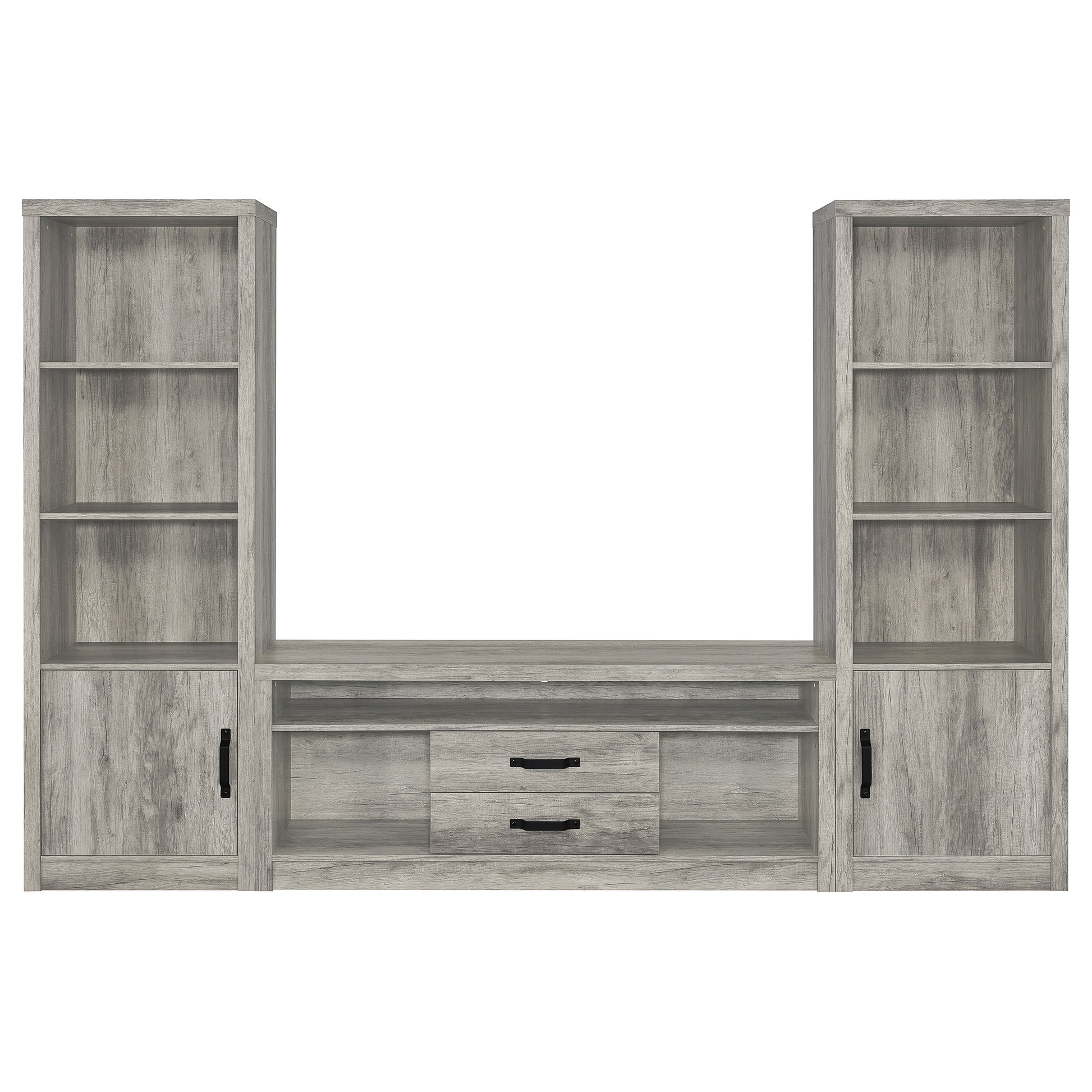 Torre multimedia Burke de 3 estantes de madera de ingeniería, color gris Driftwood