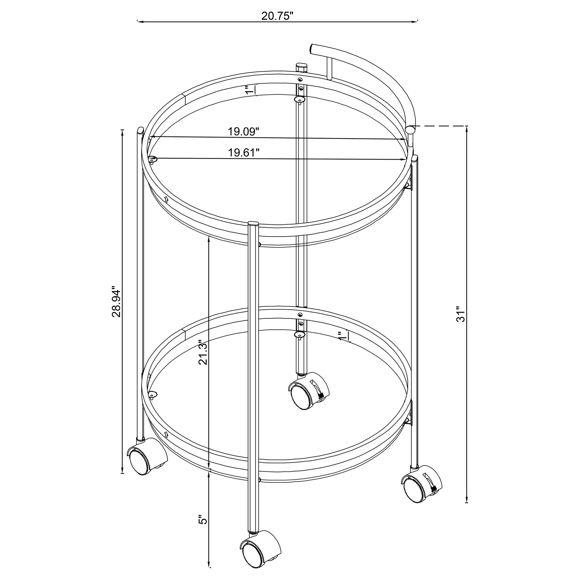 Estante de vidrio redondo Chrissy, carrito de bar de metal cromado