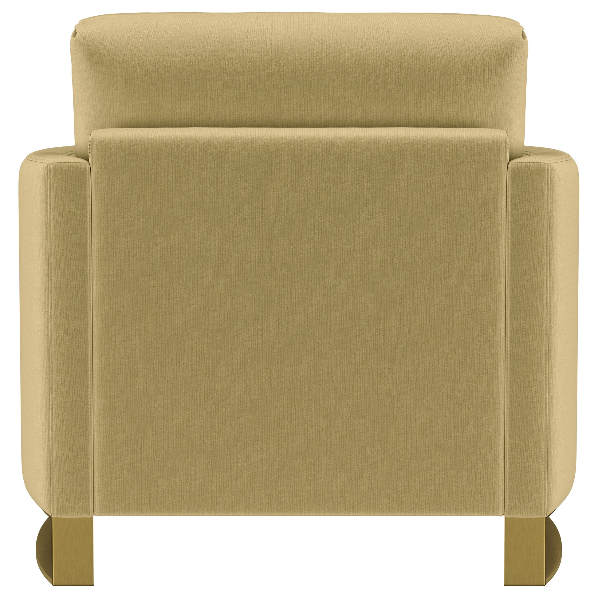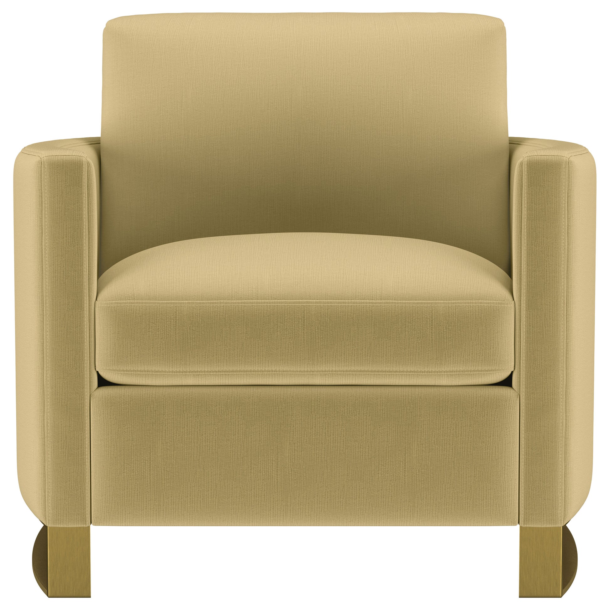 Sillón Corliss tapizado con brazos curvos en color camello