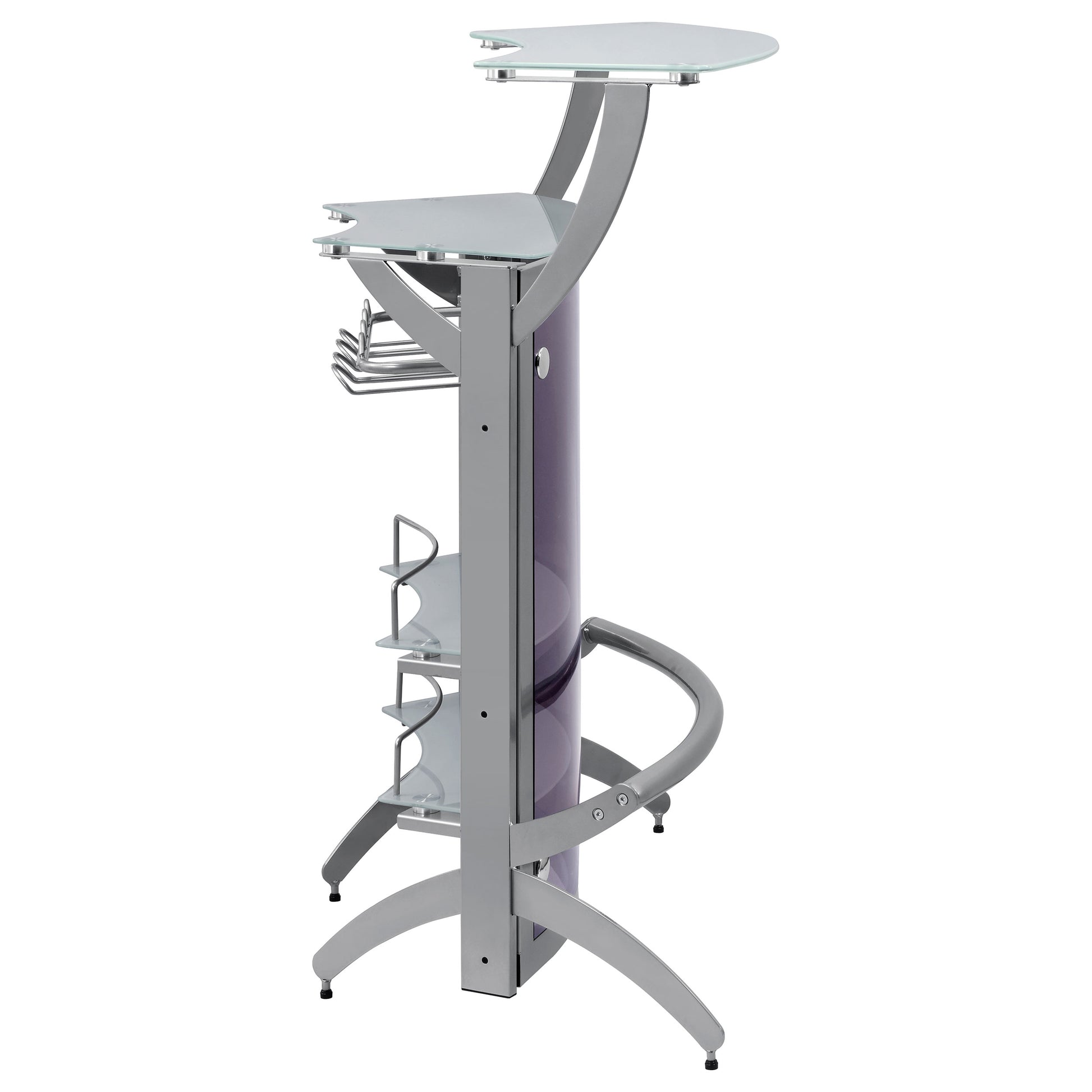 • La unidad de bar contemporánea presenta un diseño curvo y elegante con un marco de metal con acabado plateado.