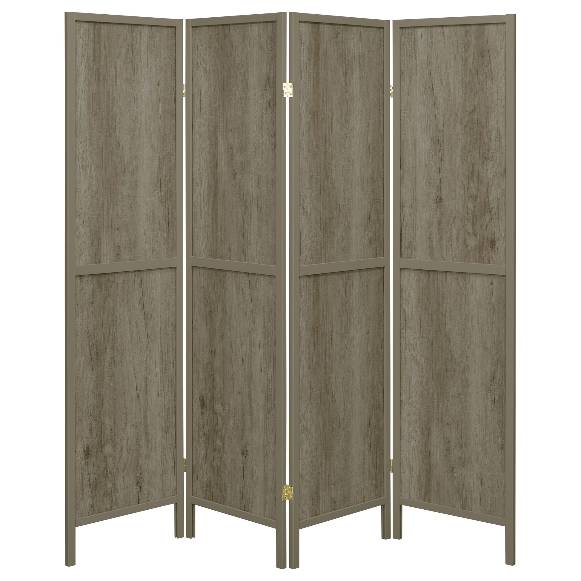 Biombo plegable de 4 paneles Deepika, madera flotante gris