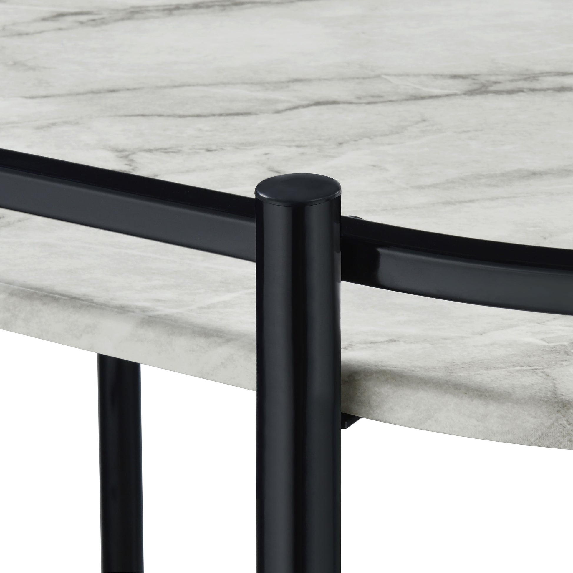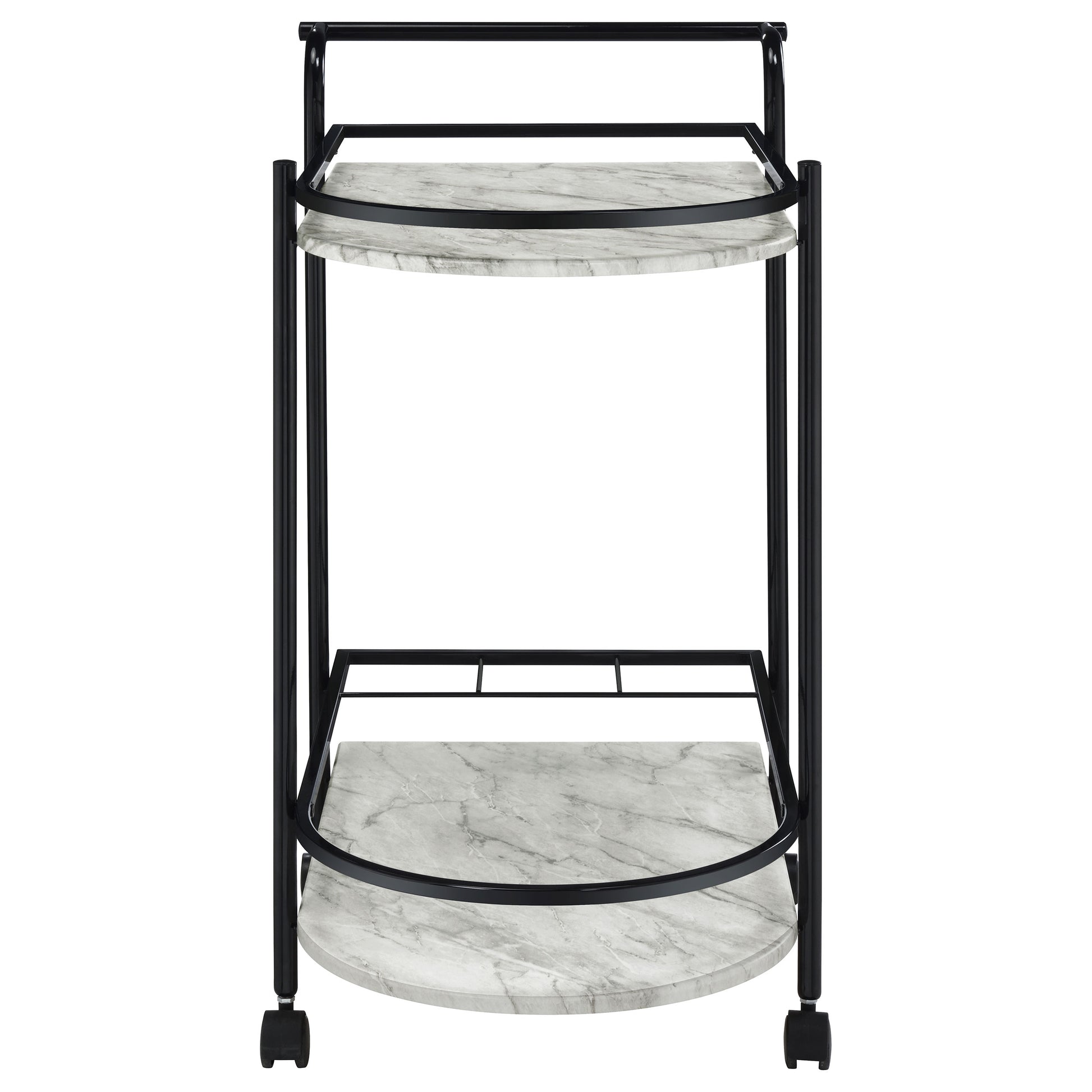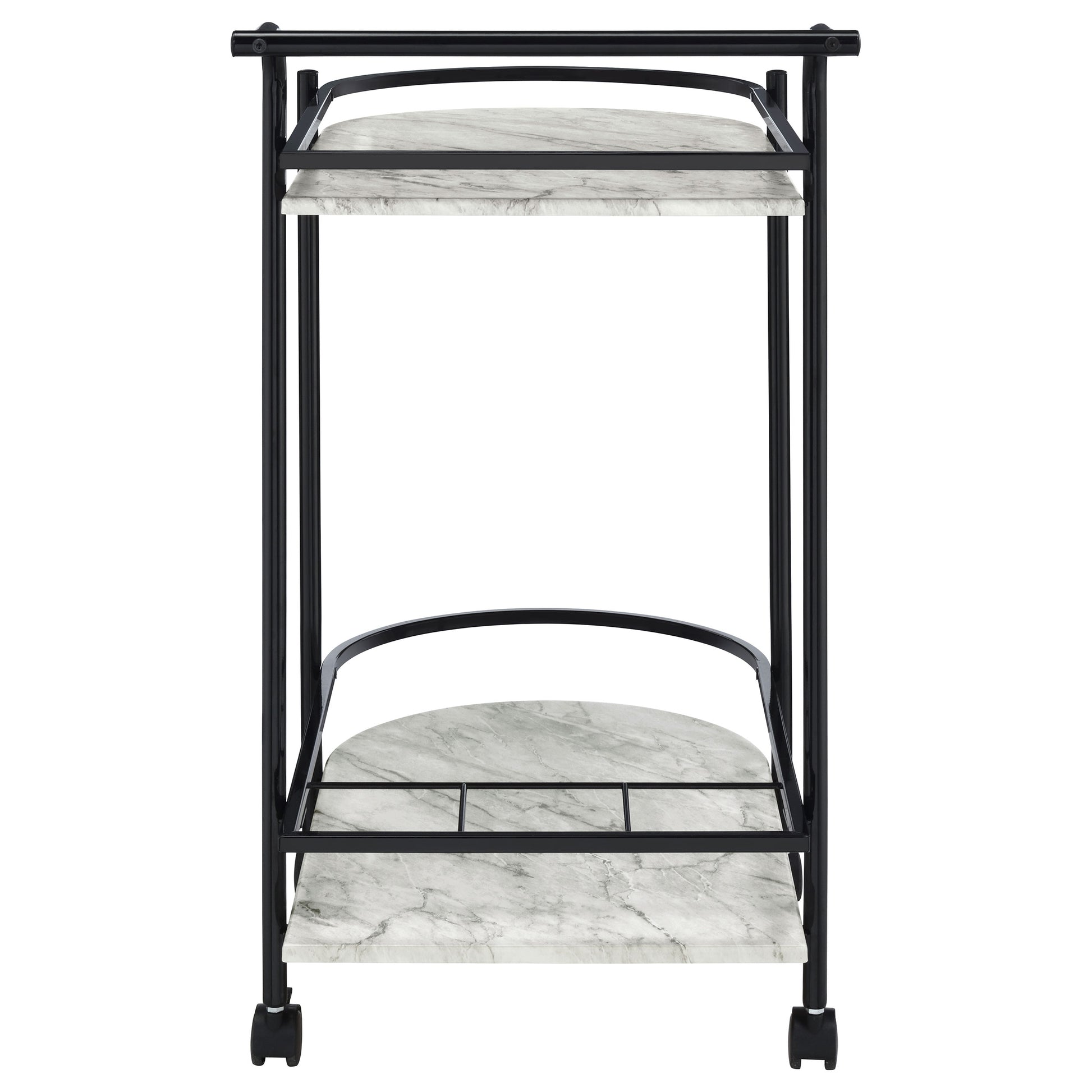 Carrito de bar de metal Desiree con estantes de imitación de mármol de dos niveles, color negro