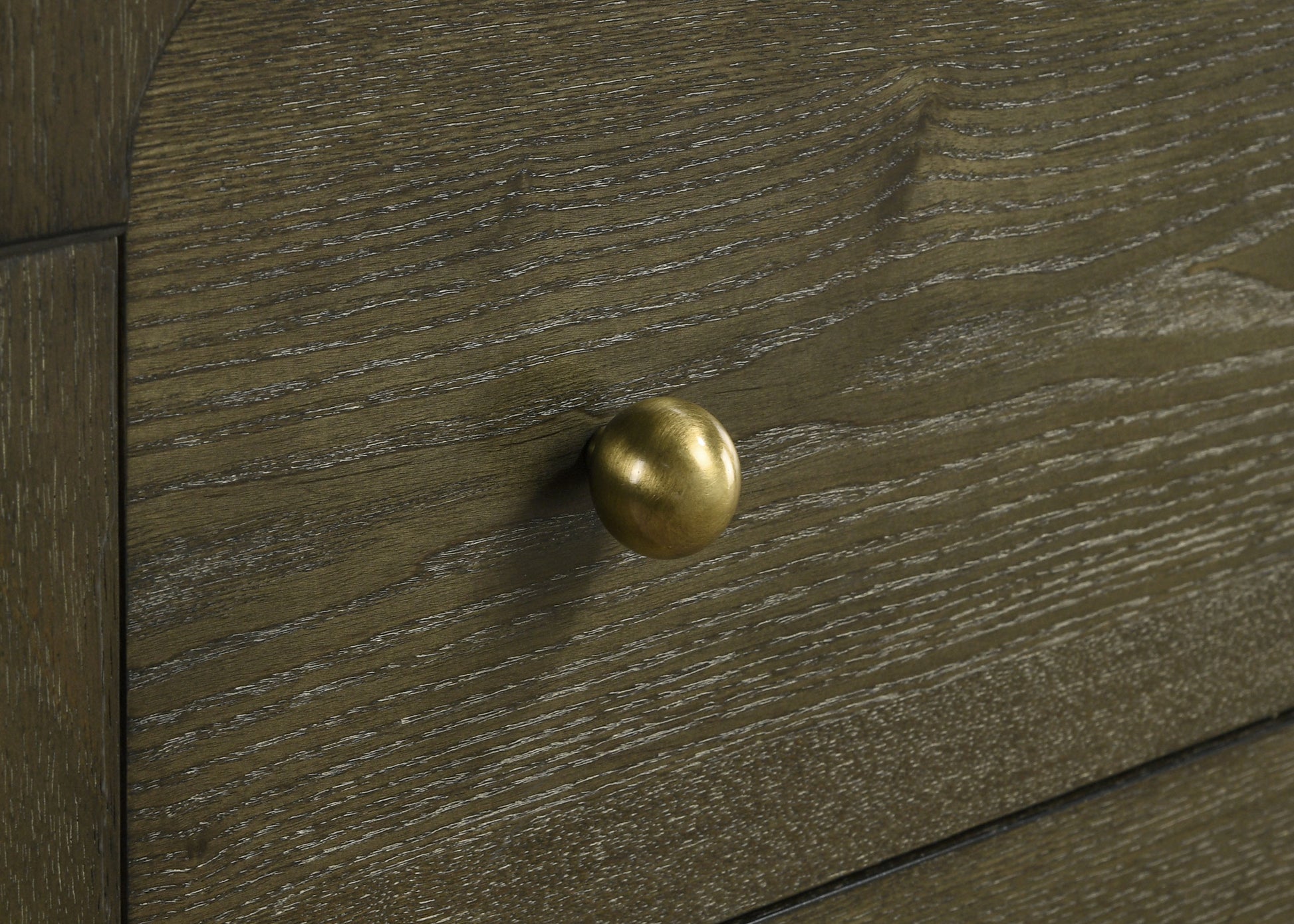 • Acabado en cacao oscuro con perillas de latón para una apariencia sofisticada.