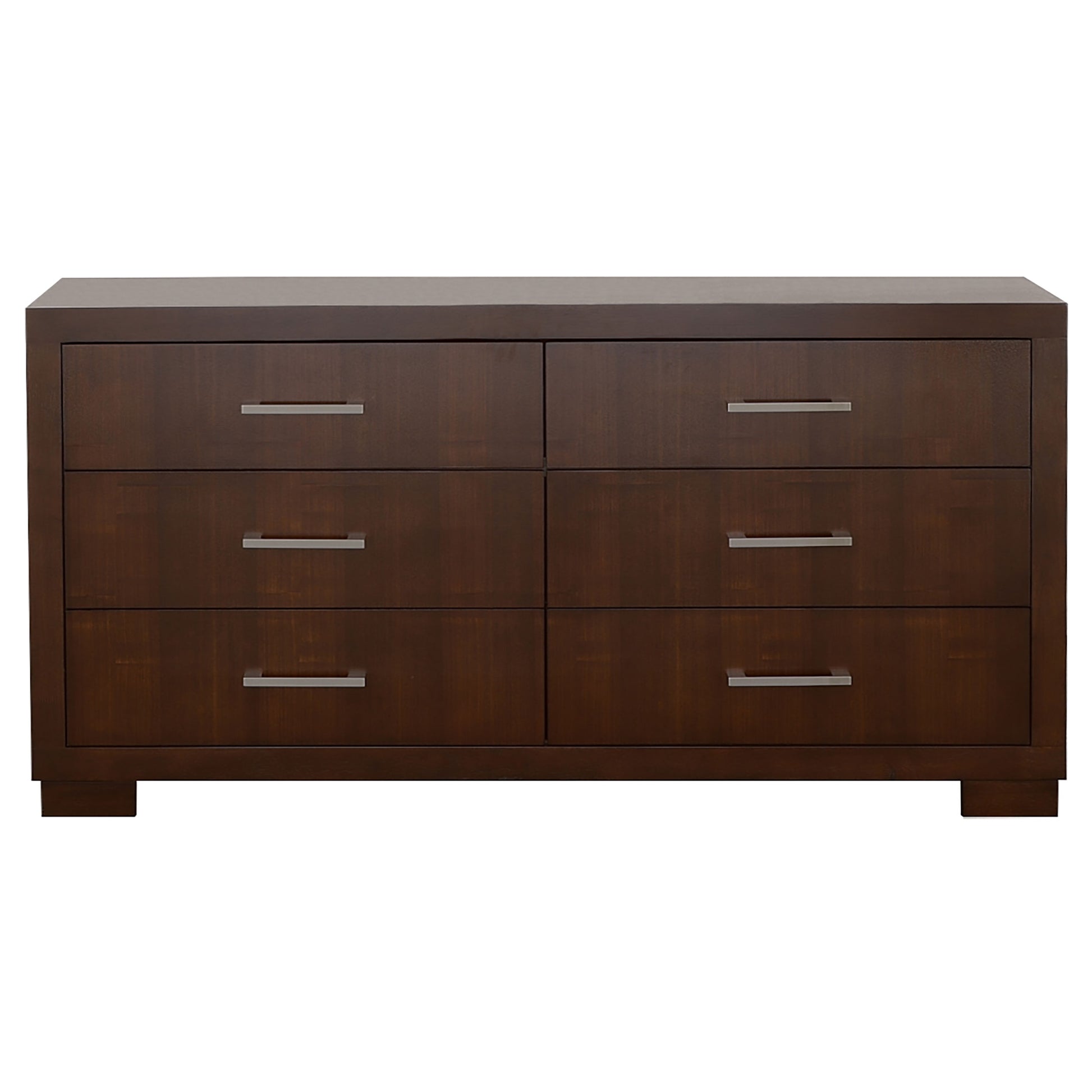 Juego de dormitorio Jessica de 6 piezas con iluminación LED Queen en color capuchino