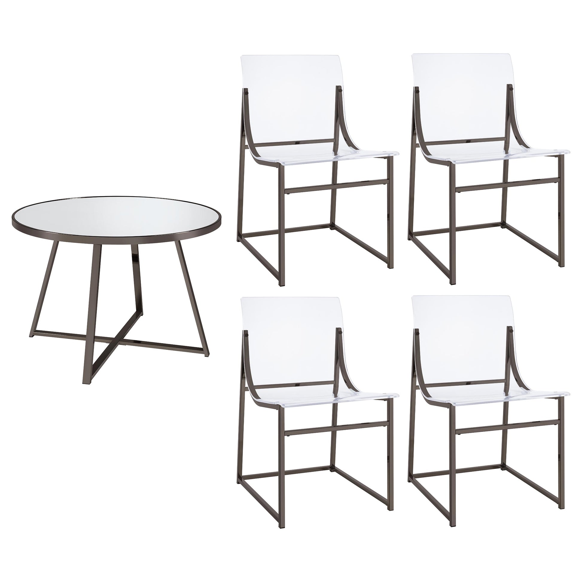Juego de comedor Jillian de 5 piezas con espejo redondo en níquel negro
