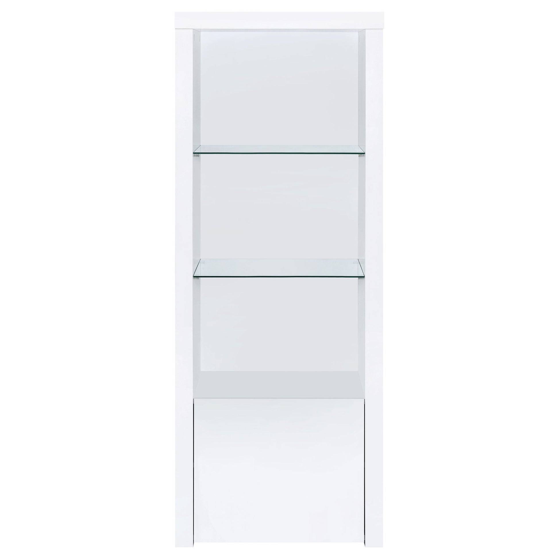 • Diseño elegante y moderno con un acabado blanco sobre blanco brillante impecable y detalles de vidrio transparente.
