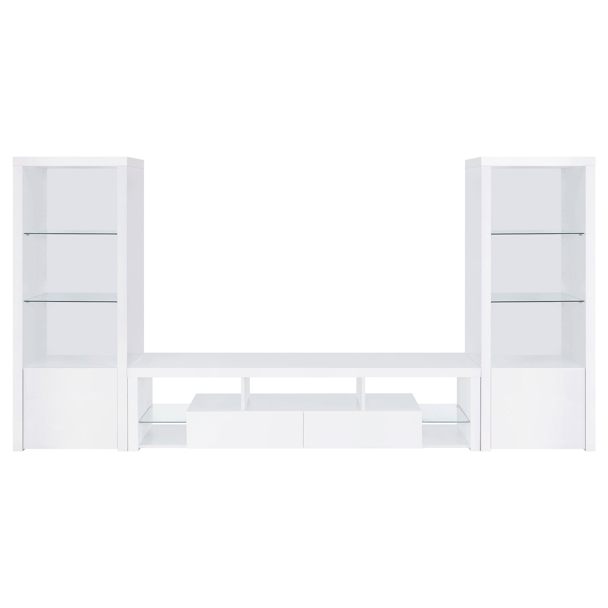 Torre multimedia Jude de 3 estantes de madera de ingeniería, blanco brillante