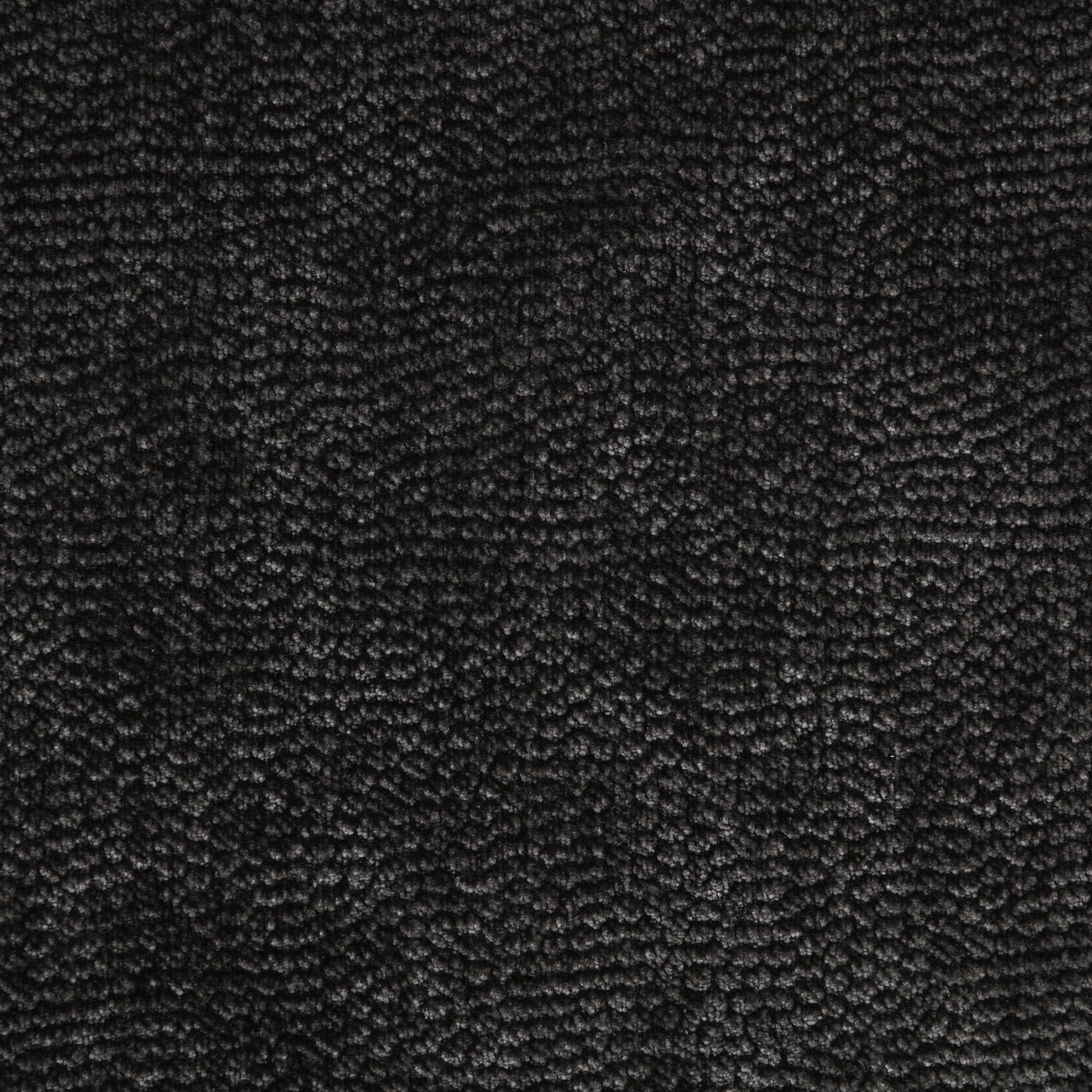 • Dark grey chenille upholstery features a soft texture with a refined woven appearance
