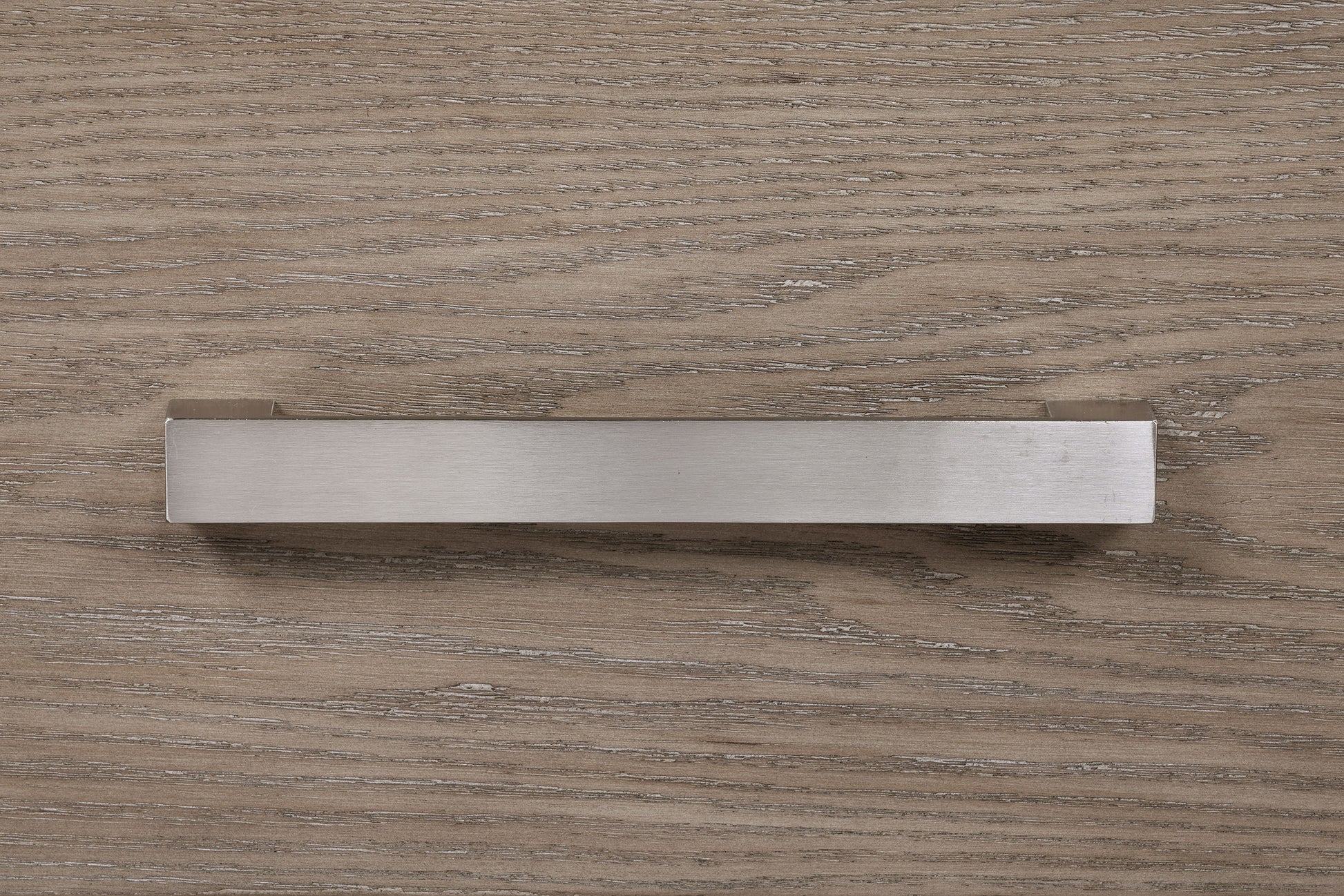 • La moldura ingleteada agrega dimensión mientras que los tiradores de barra con acabado cromado completan el aspecto.