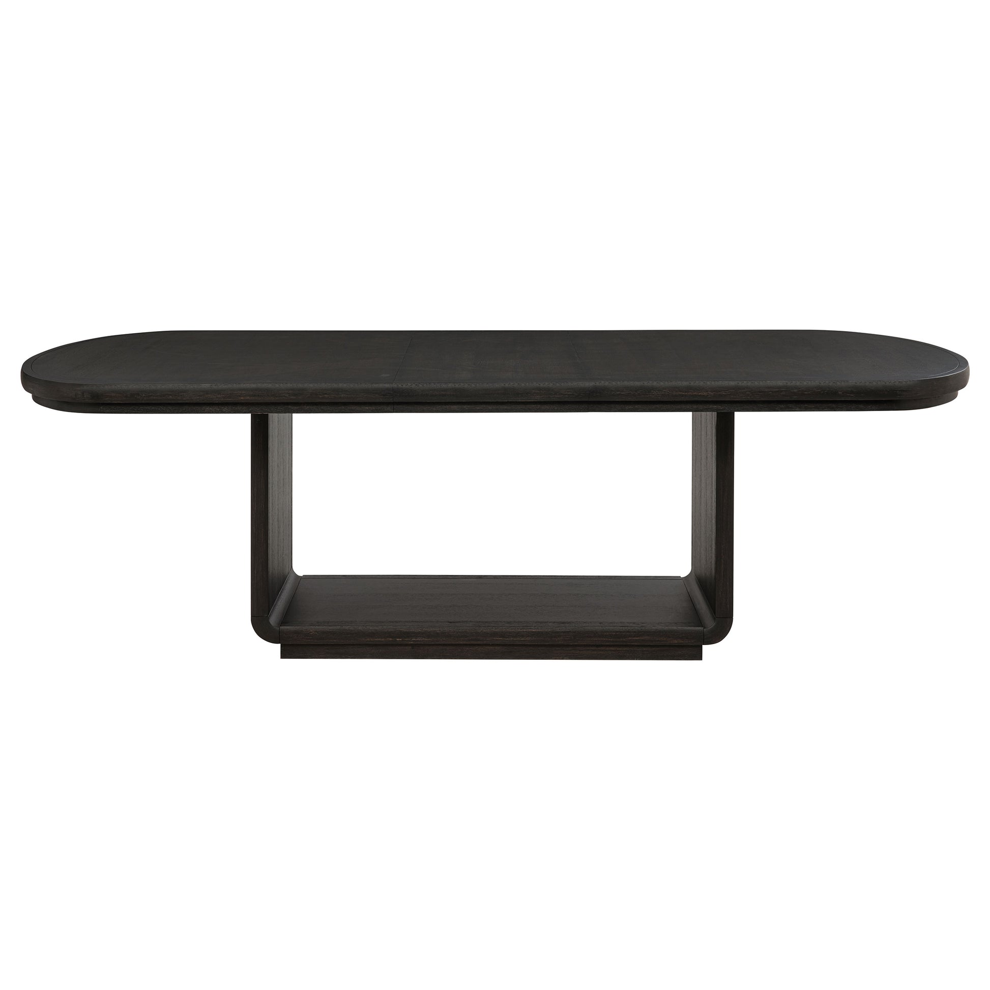 • Dining set includes rectangular table with pedestal base and removable leaf extension