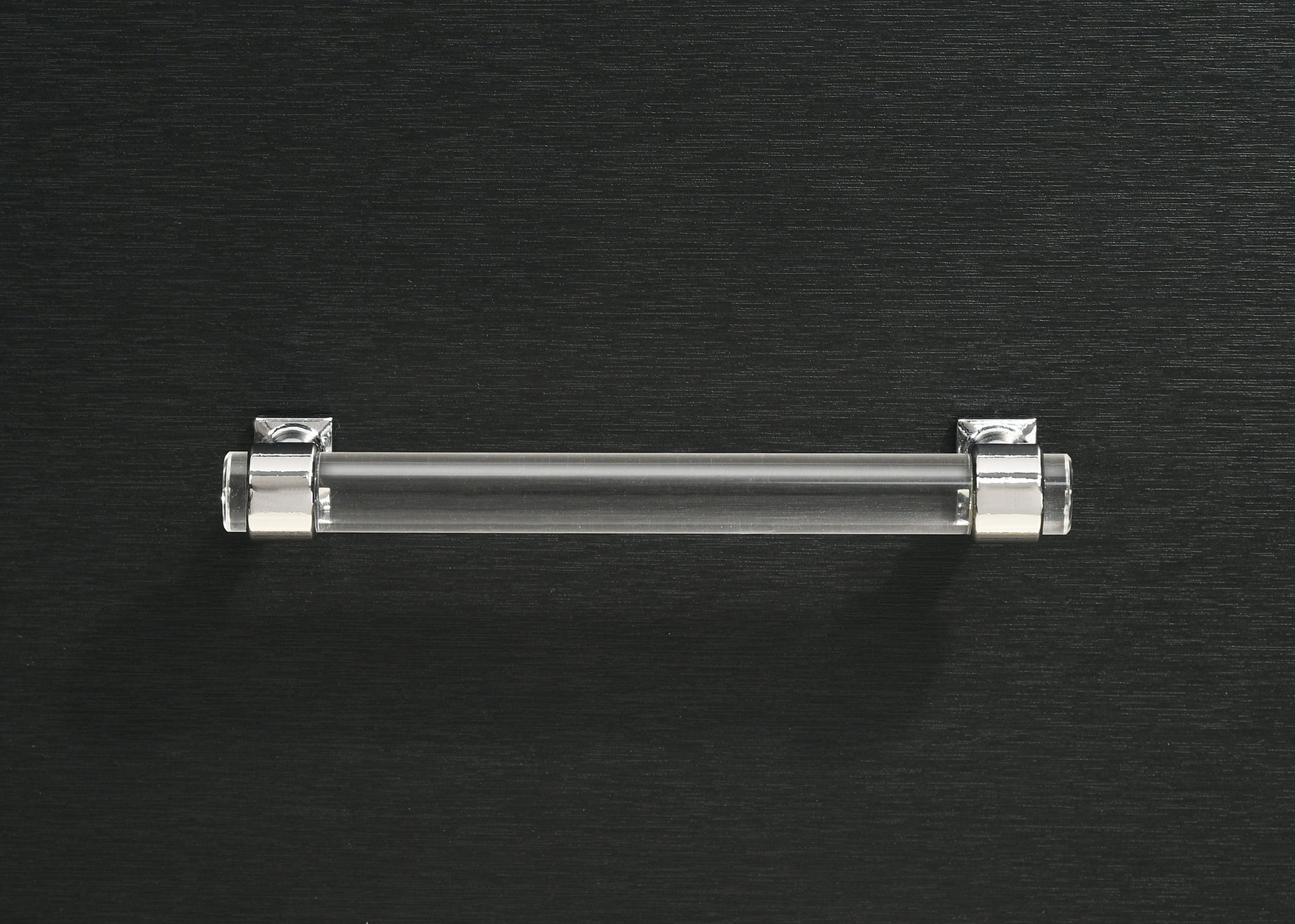 • Los detalles con acabado cromado brillante acentúan la cabecera y las piezas del gabinete, ofreciendo un toque llamativo a las patas decorativas.