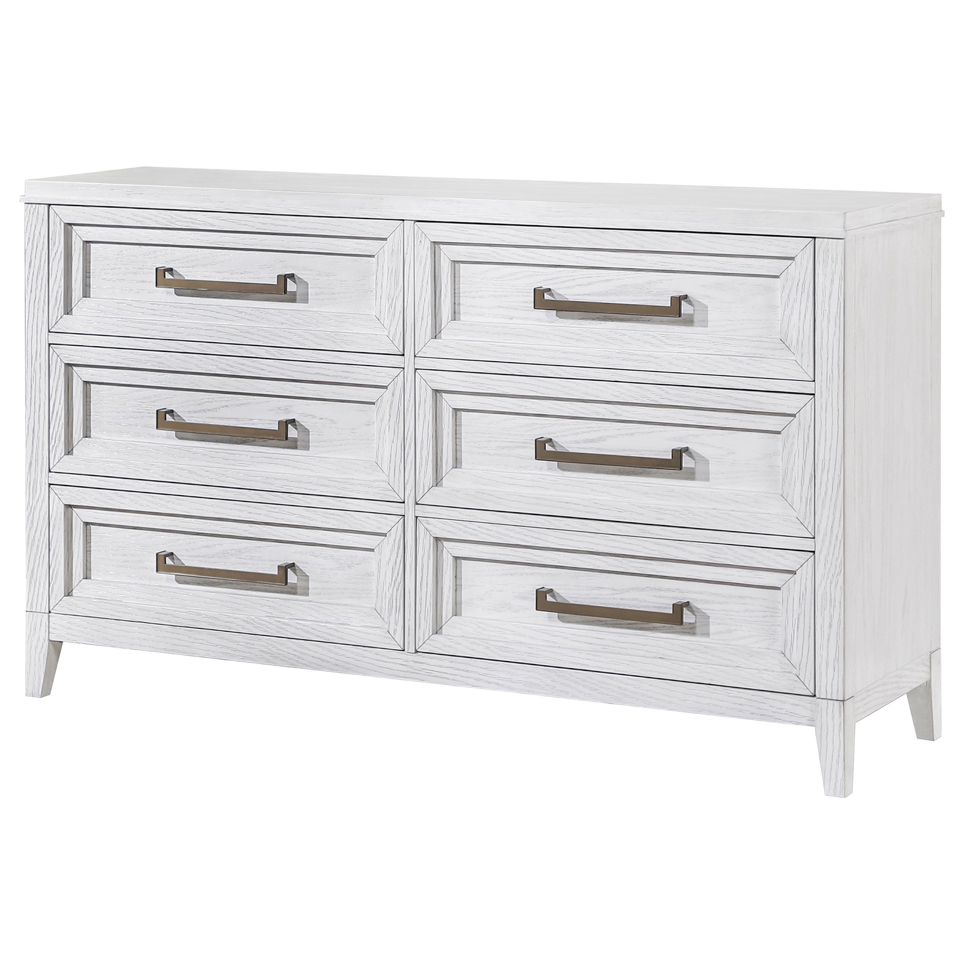 Cómoda Marielle de 6 cajones en blanco desgastado