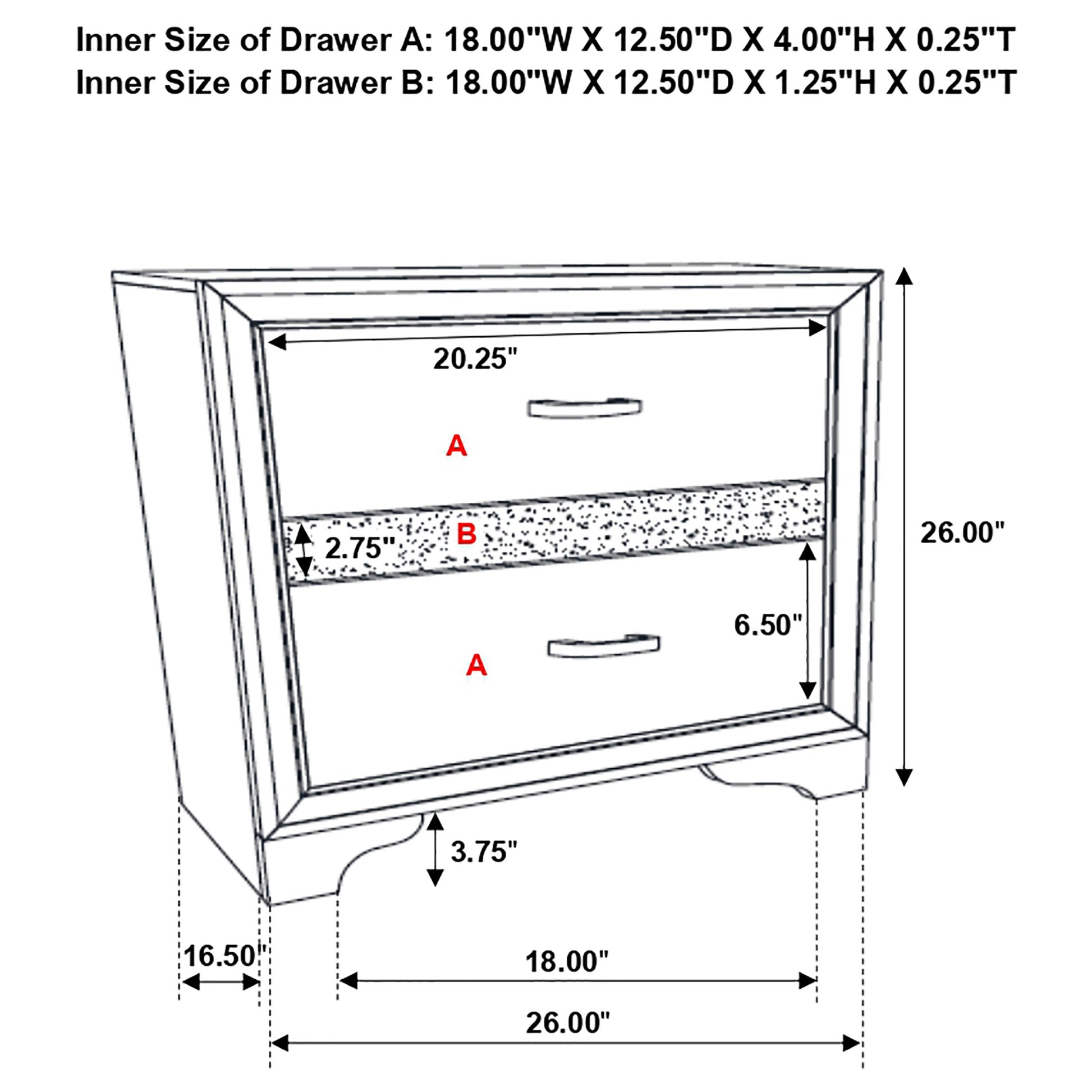 • La mesita de noche cuenta con cajones dobles y guías de extensión completa.