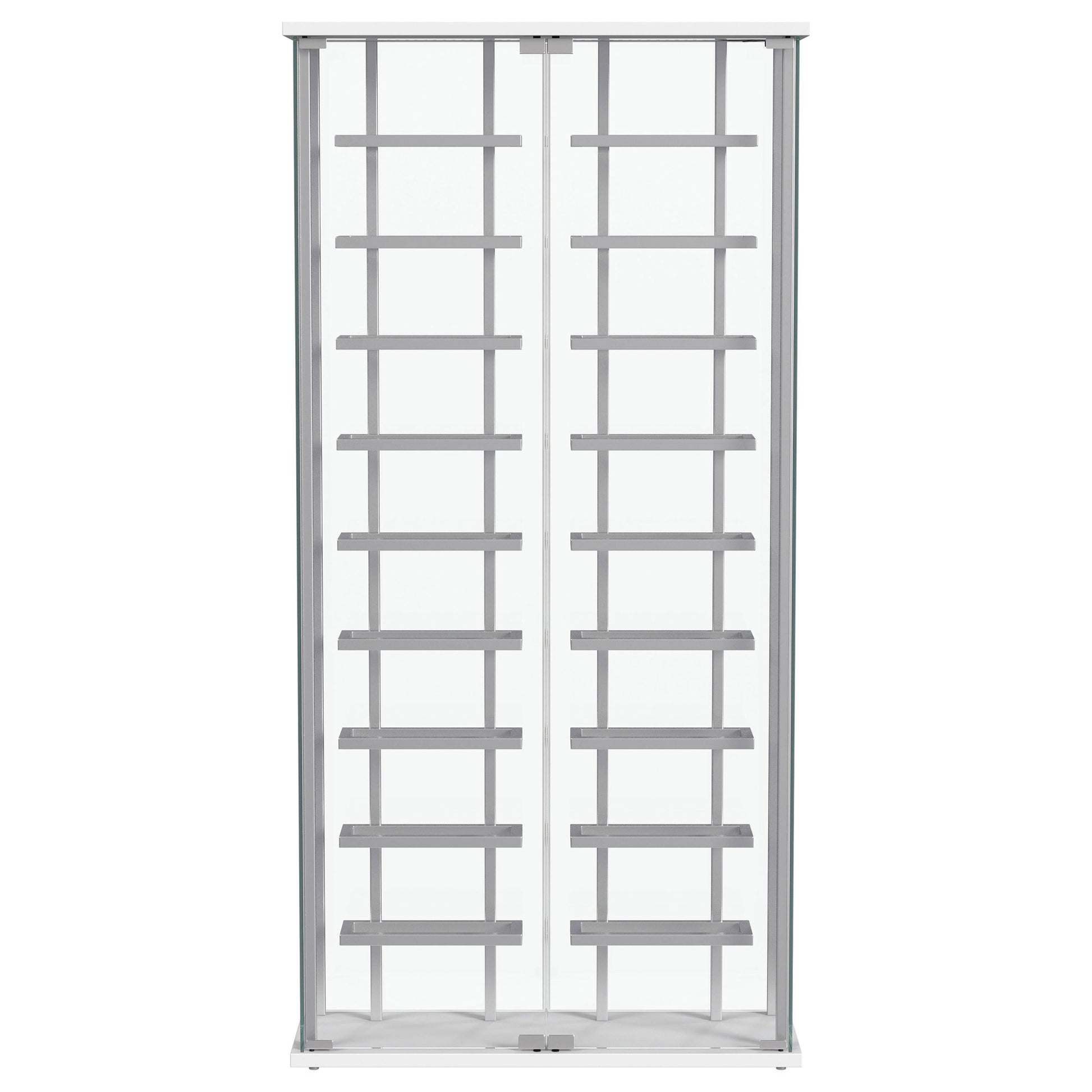 • El gabinete exhibe 18 botellas de vino para crear una presentación elegante en una cocina o comedor.