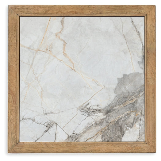 | Detalles | Fabricado con madera maciza, chapa de mango, piedra sinterizada y metal, Acabado en tono de madera natural claro, Estructura con acabado negro, La piedra sinterizada es un material artificial no poroso que imita el aspecto de la piedra natural, Estante inferior, Requiere ensamblaje | |