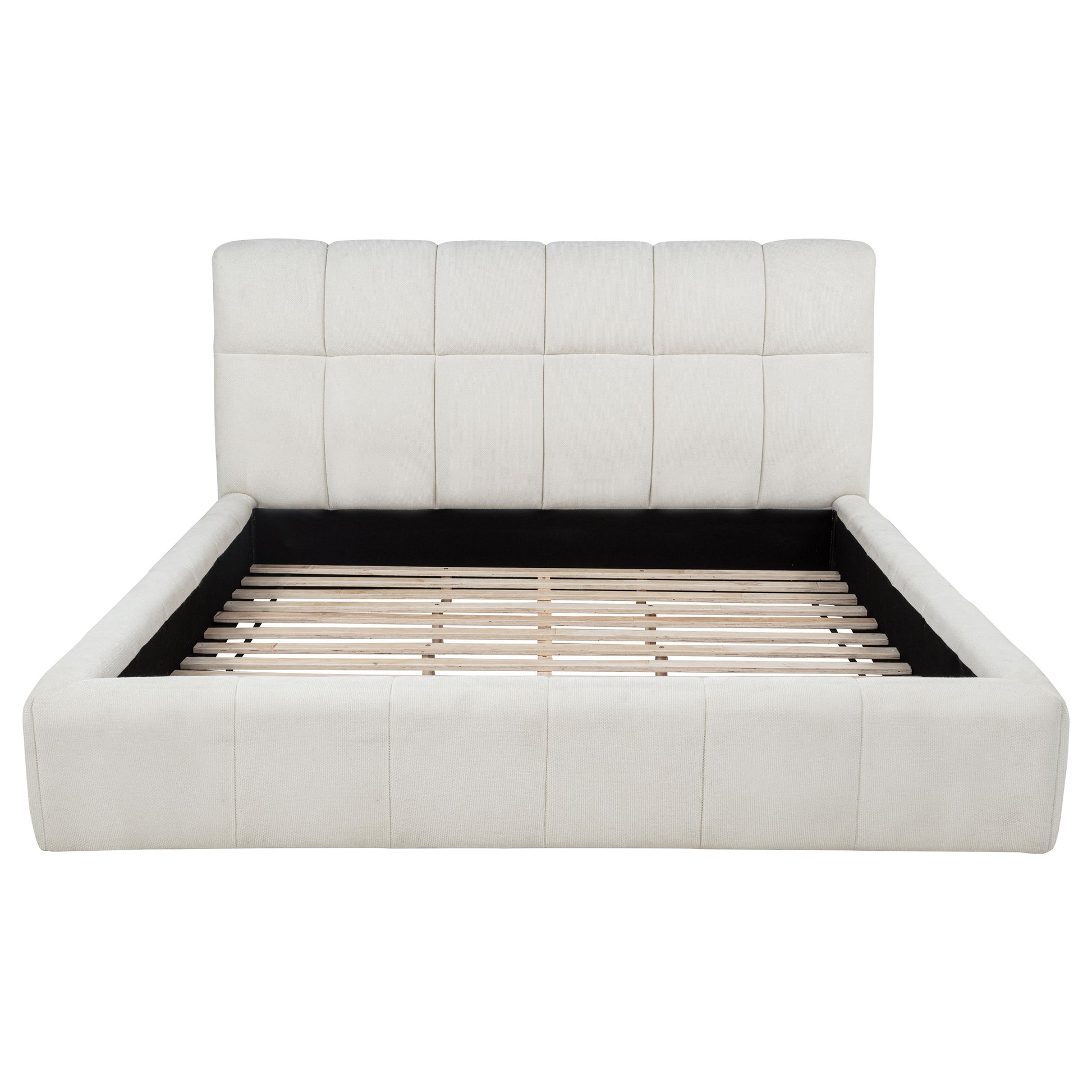 • Eastern king platform bed with vertical channel tufting for a clean, modern profile