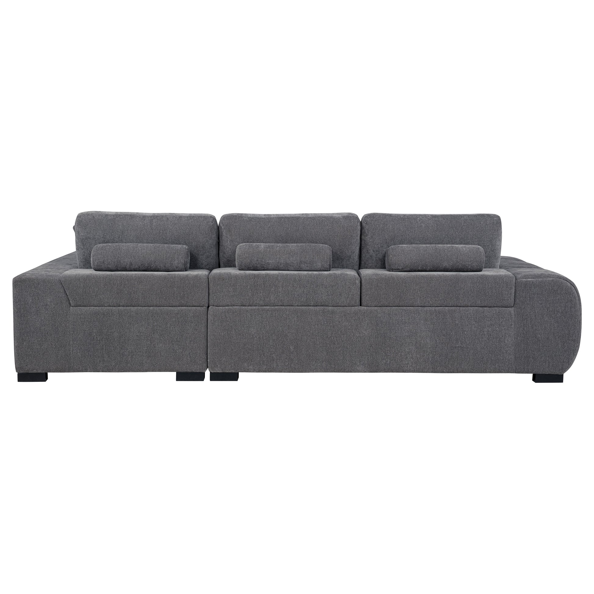 • El seccional en tela gris carbón cuenta con un chaise longue esculpido en el lado derecho para descansar por más tiempo.
