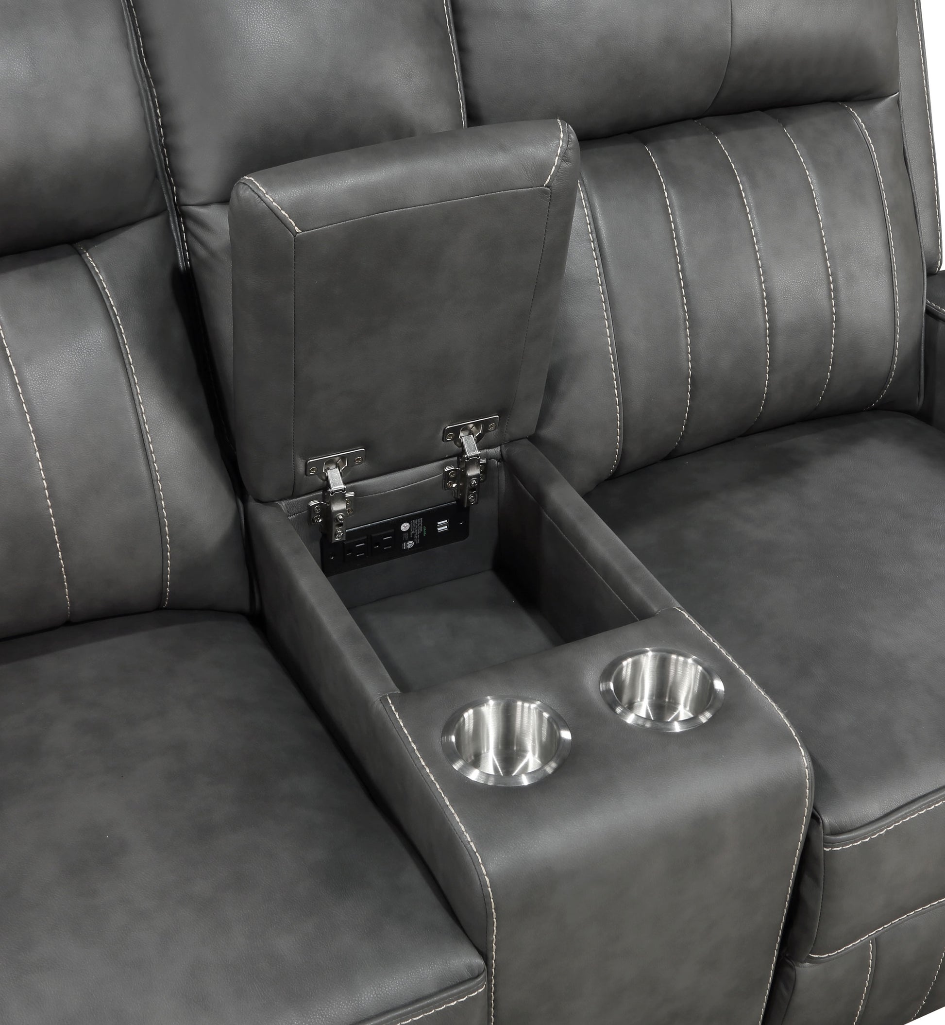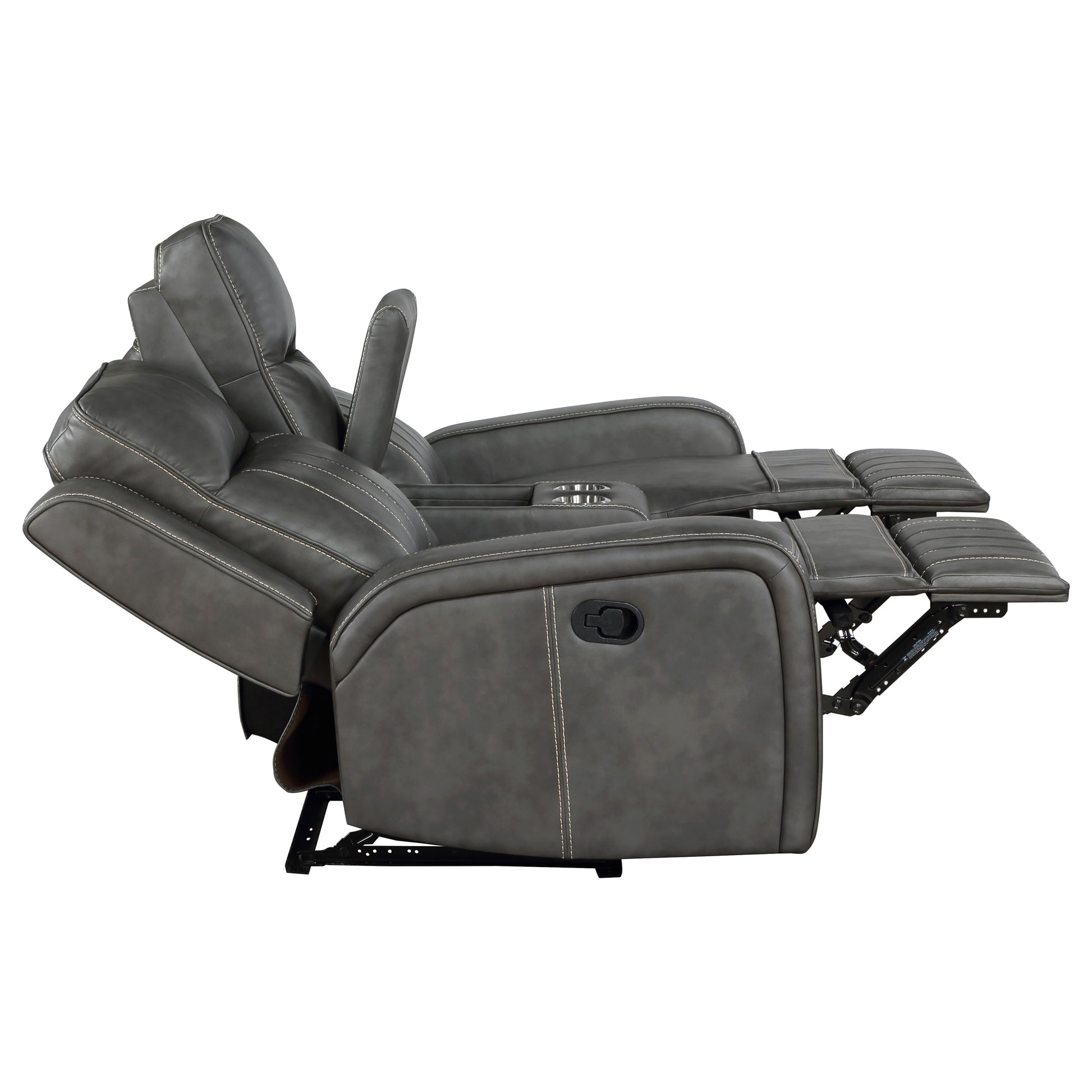Loveseat tapizado con brazo articulado y movimiento Raelynn, color gris