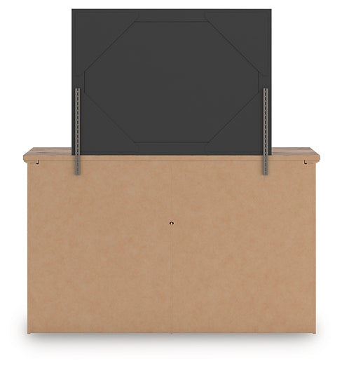 Rusticott Queen Panel Bed with Mirrored Dresser and Nightstand