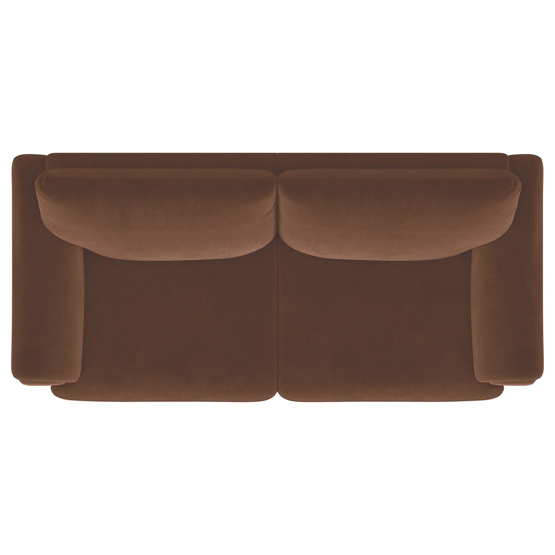 Sofá Selma tapizado en terciopelo con brazos en forma de media luna en color óxido
