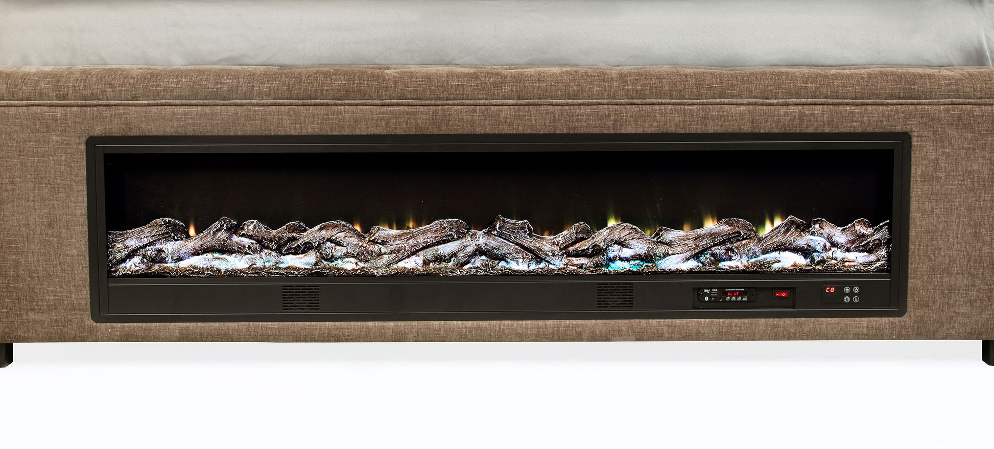 Cama Senna tapizada California King con audio y visualizador de llamas, color marrón