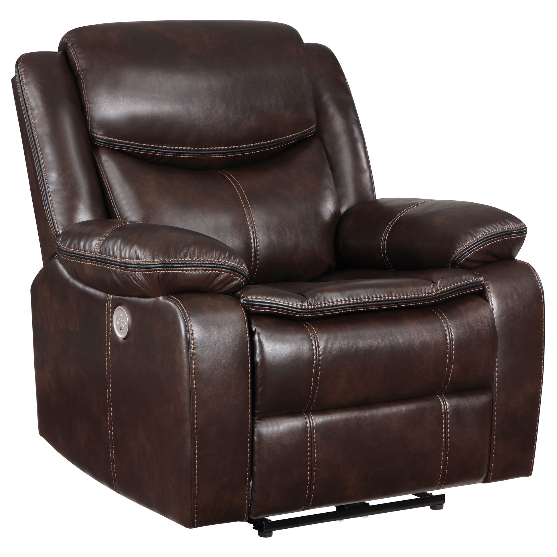 • Las costuras decorativas en contraste crean un toque refinado y añaden una textura atractiva a un sillón reclinable eléctrico.