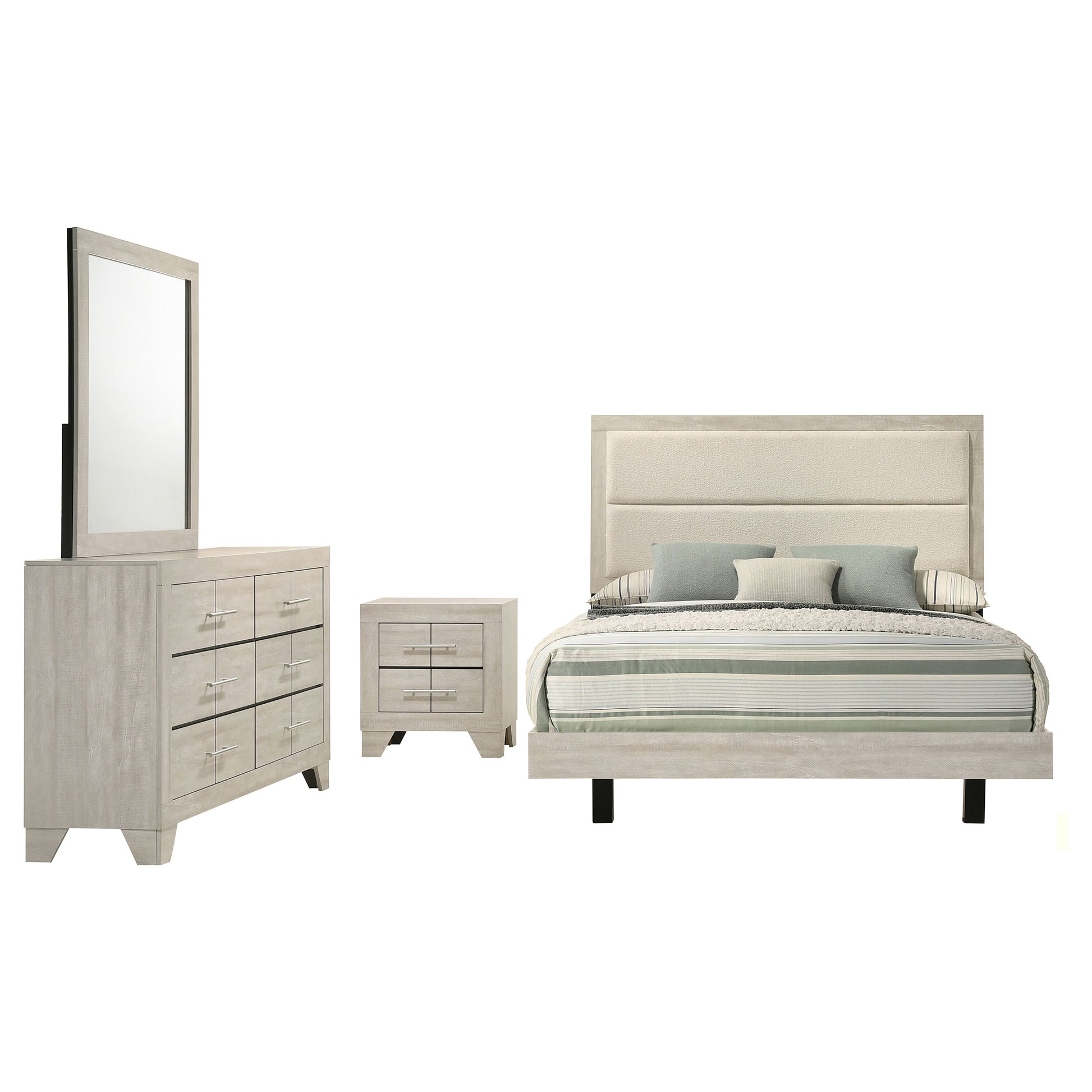 Juego de dormitorio Trenton de 4 piezas tamaño queen en color crema rústico