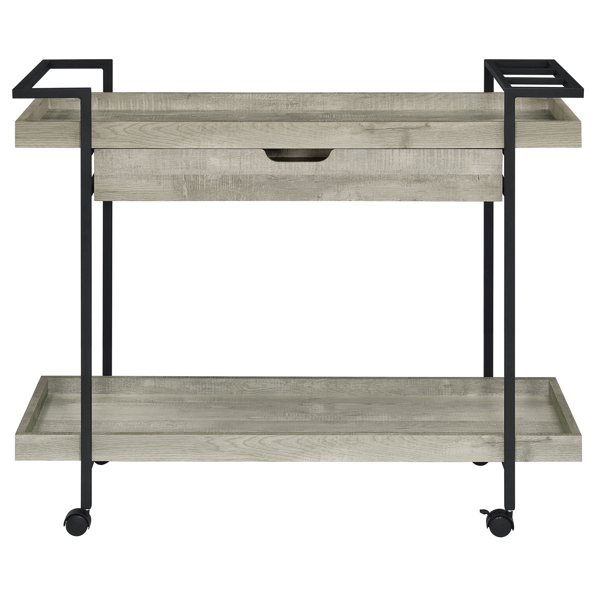 Carrito de bar Ventura de madera de ingeniería con 1 cajón, color gris Driftwood