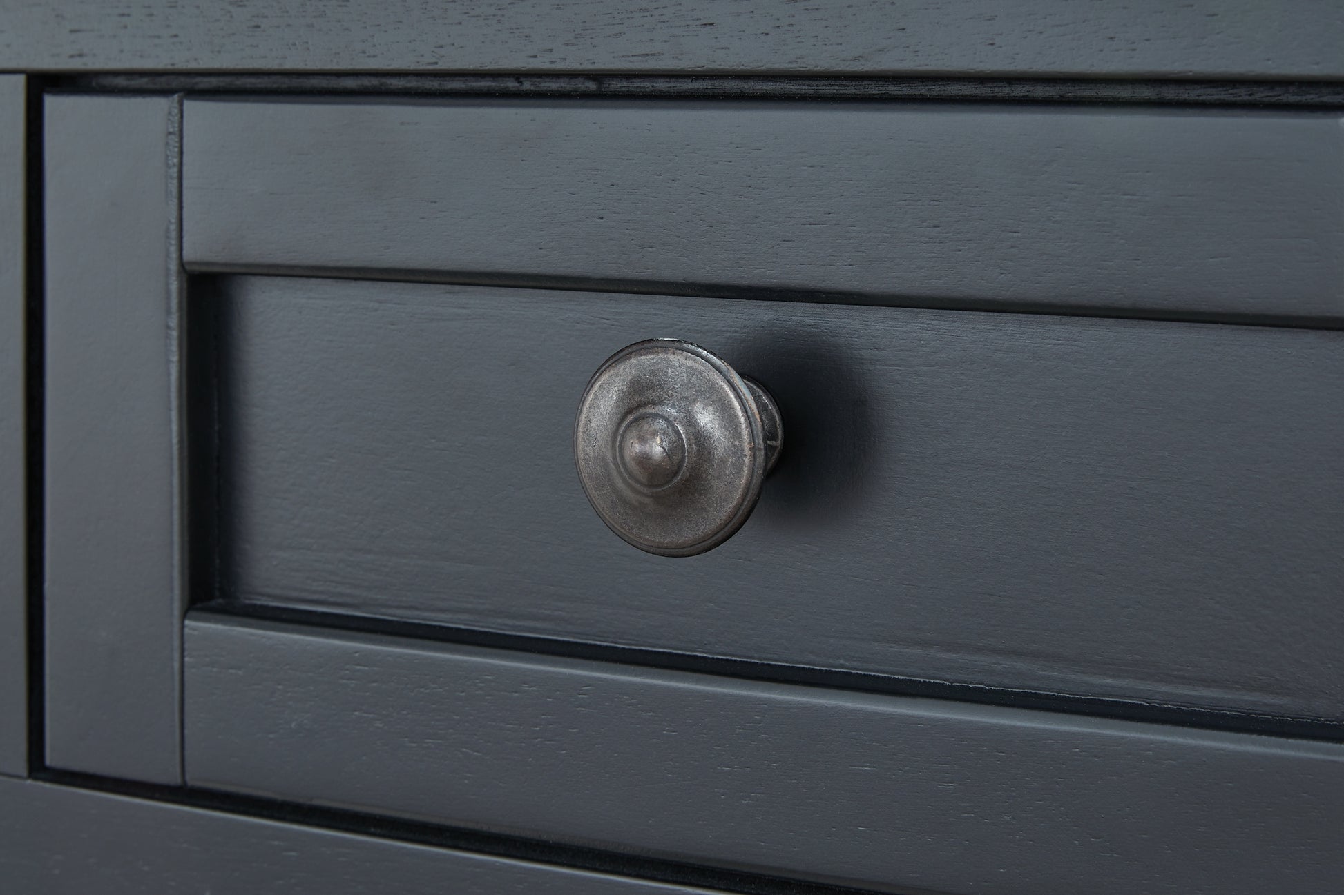 | Detalles | Fabricado con maderas duras sólidas, chapa de madera de mango y sustratos de MDF, cubierta con patrón de chapa de bloque de carnicero en acabado en tono madera marrón intenso, base con acabado negro satinado cálido, herrajes con acabado en tono peltre oscuro, cajón de deslizamiento suave con interior completamente terminado, construcción de cola de milano y guías laterales resistentes con cojinetes de bolas, estante abierto, puertos de carga USB-A y USB-C, cable de alimentación incluido; listado por UL, requiere ensamblaje | |