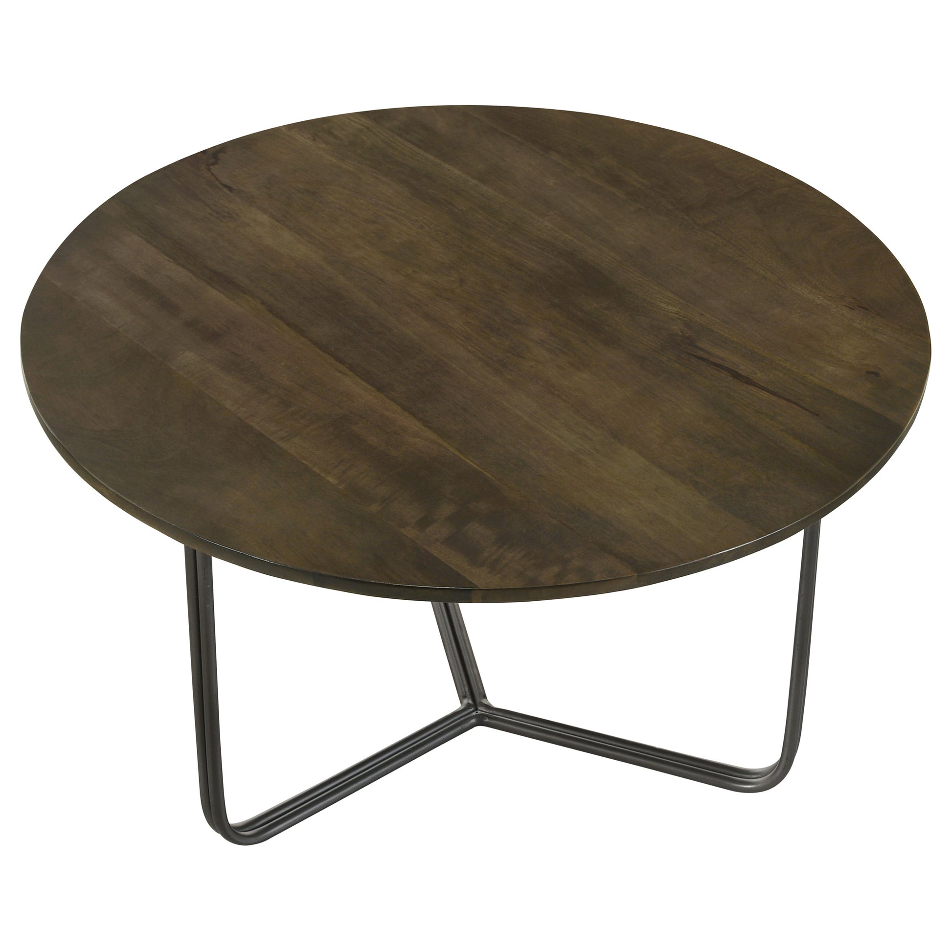 Mesa de centro redonda Yaritza de madera de mango en color natural y bronce