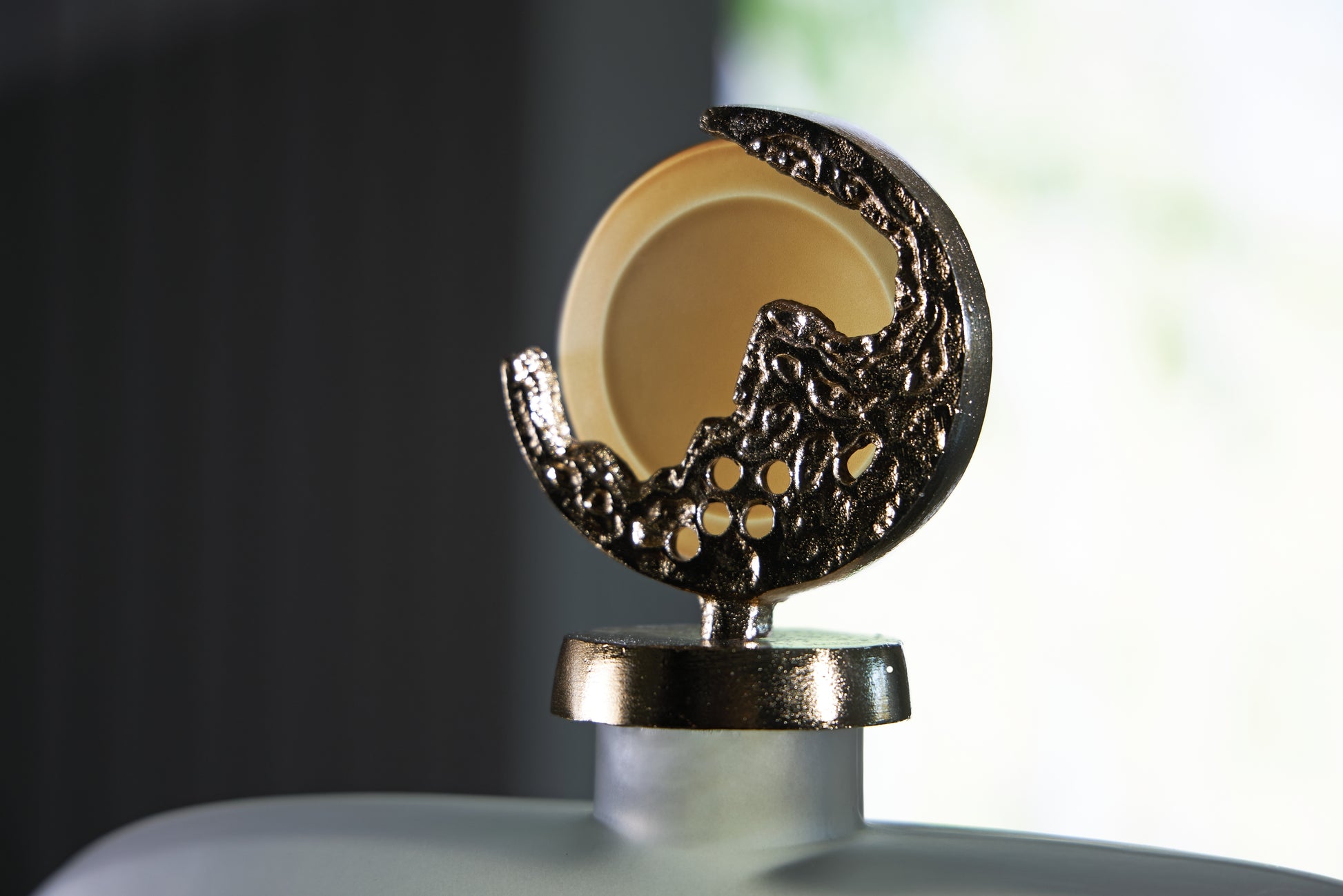 | Details | Made with frosted glass, Taupe finish, Cast aluminum topper with goldtone finish, Due to the finishing process of this product, some variations may occur | |