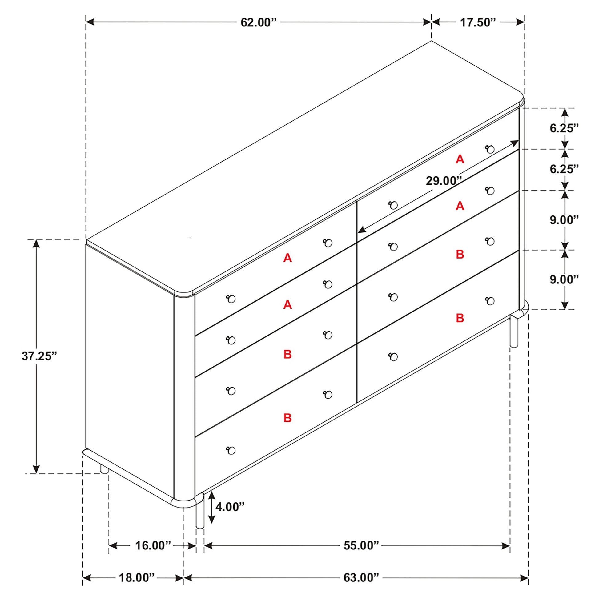 • Eight-drawer dresser with smooth sand wash wire-brushed finish