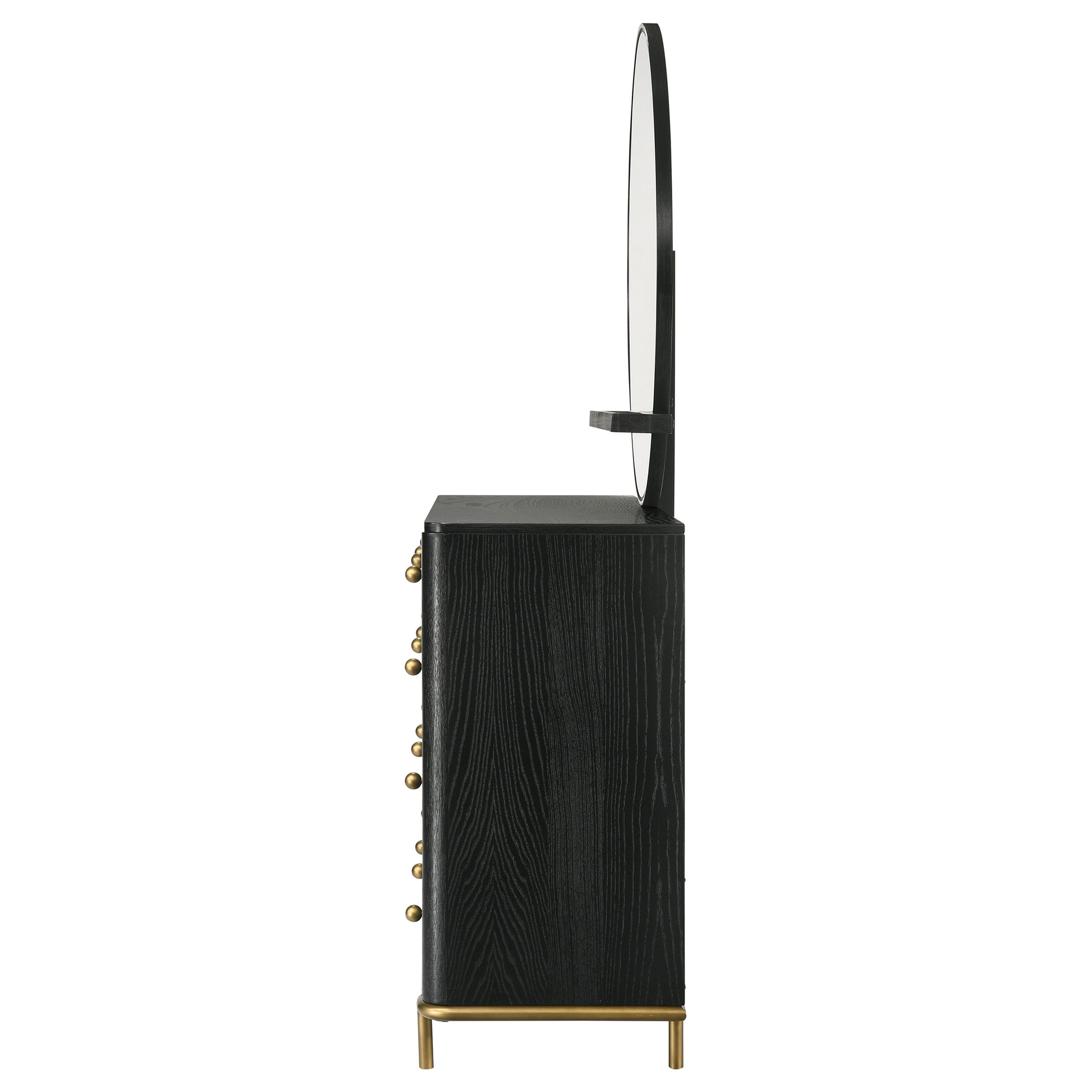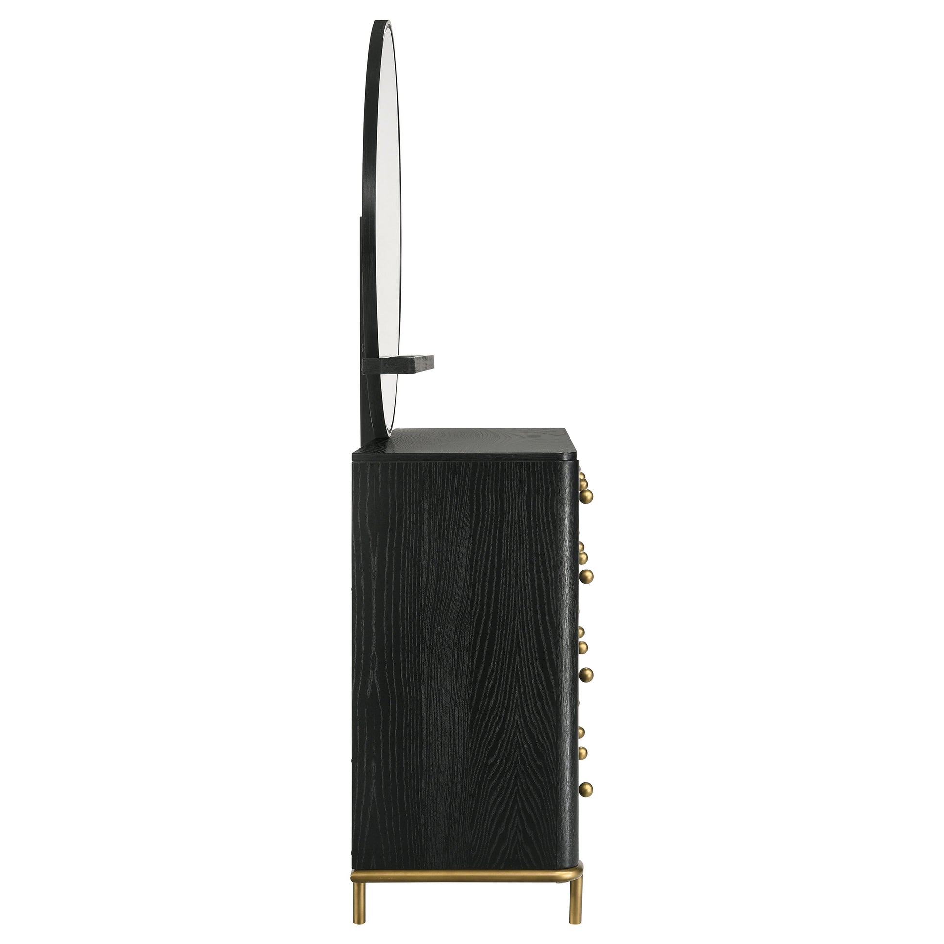 • A modern eight drawer dresser and mirror sets a refined, sophisticated tone in your bedroom