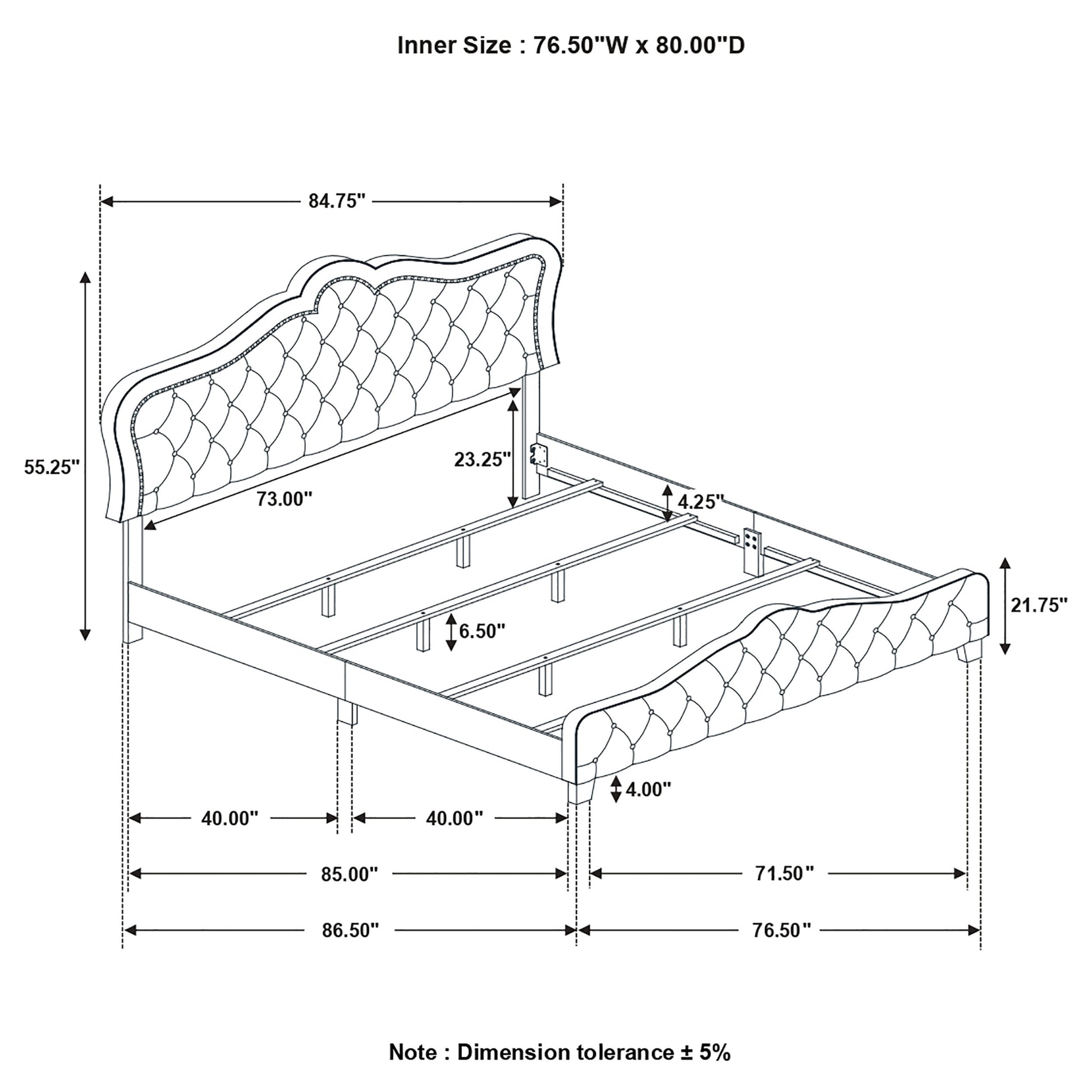 • Self welt trim outlines the front edge profile of both headboard and footboard
