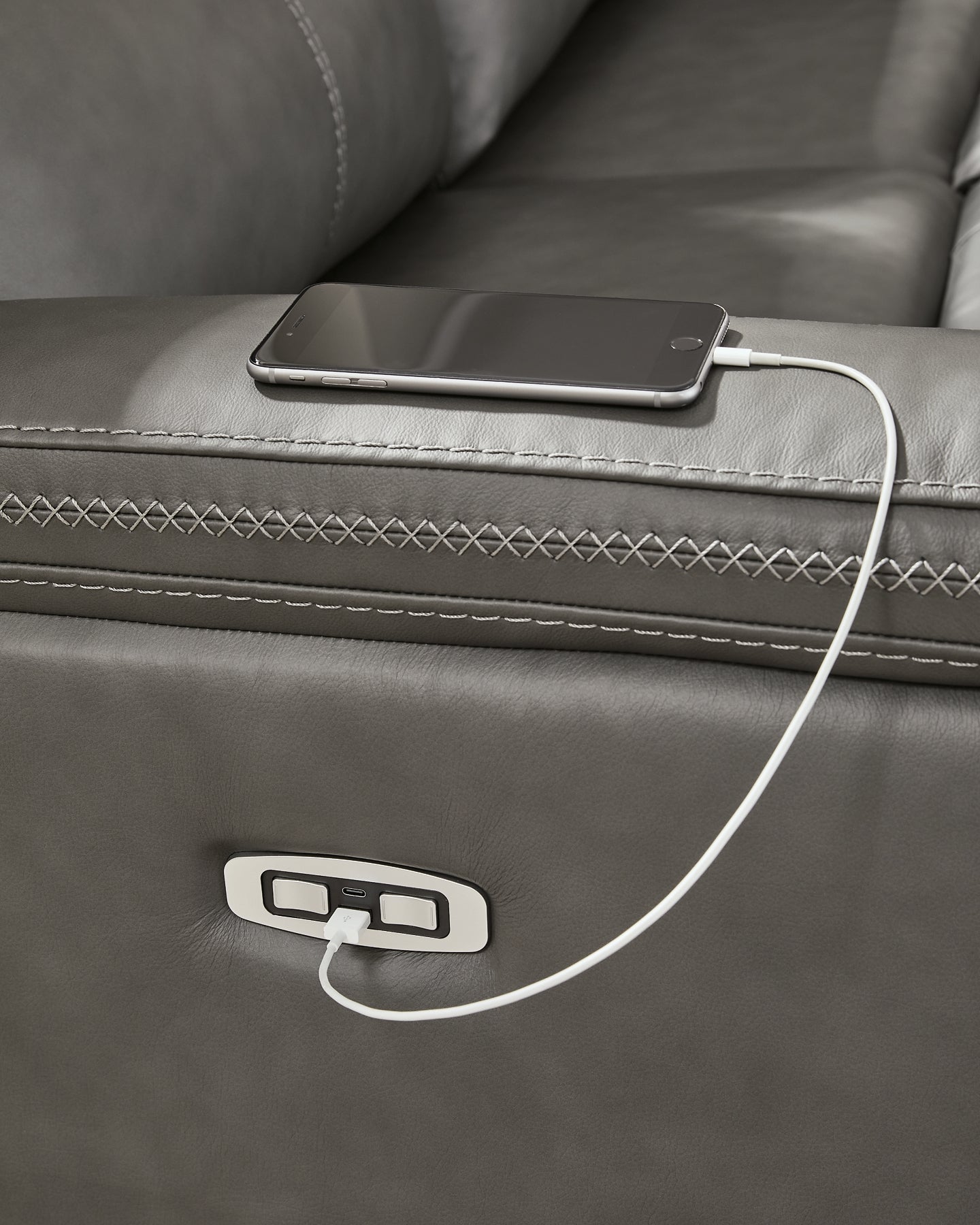 | Details | Includes 5 pieces: left-arm facing power recliner, armless chair, wedge, power armless recliner and right-arm facing power recliner, One-touch power control with adjustable positions, Easy View™ adjustable headrest and zero-draw USB-A and USB-C ports, Zero-draw technology only consumes power when the USB receptacle is in use, Zero-gravity mechanism allows optimum reclining comfort with infinite reclining positions at the touch of a button, Corner-blocked frame with metal reinforced seat; attached back and seat cushions, High-quality foam cushions wrapped in poly fiber, 100% top grain leather covers inside areas such as the back, seat and arm cushions; skillfully matched faux leather covers the remaining areas, Due to its natural origin, real leather can show individual characteristics such as healed scars, growth marks, grain variation and shade variation, Natural variations make each hide unique and do not detract from the wearing qualities of leather, Zero wall recliner design requires minimal space between wall and chair back, Zero gap mechanism maintains consistent lower back and lumbar support throughout every stage of reclining for the ultimate relaxation experience, Power cord included; UL Listed | |