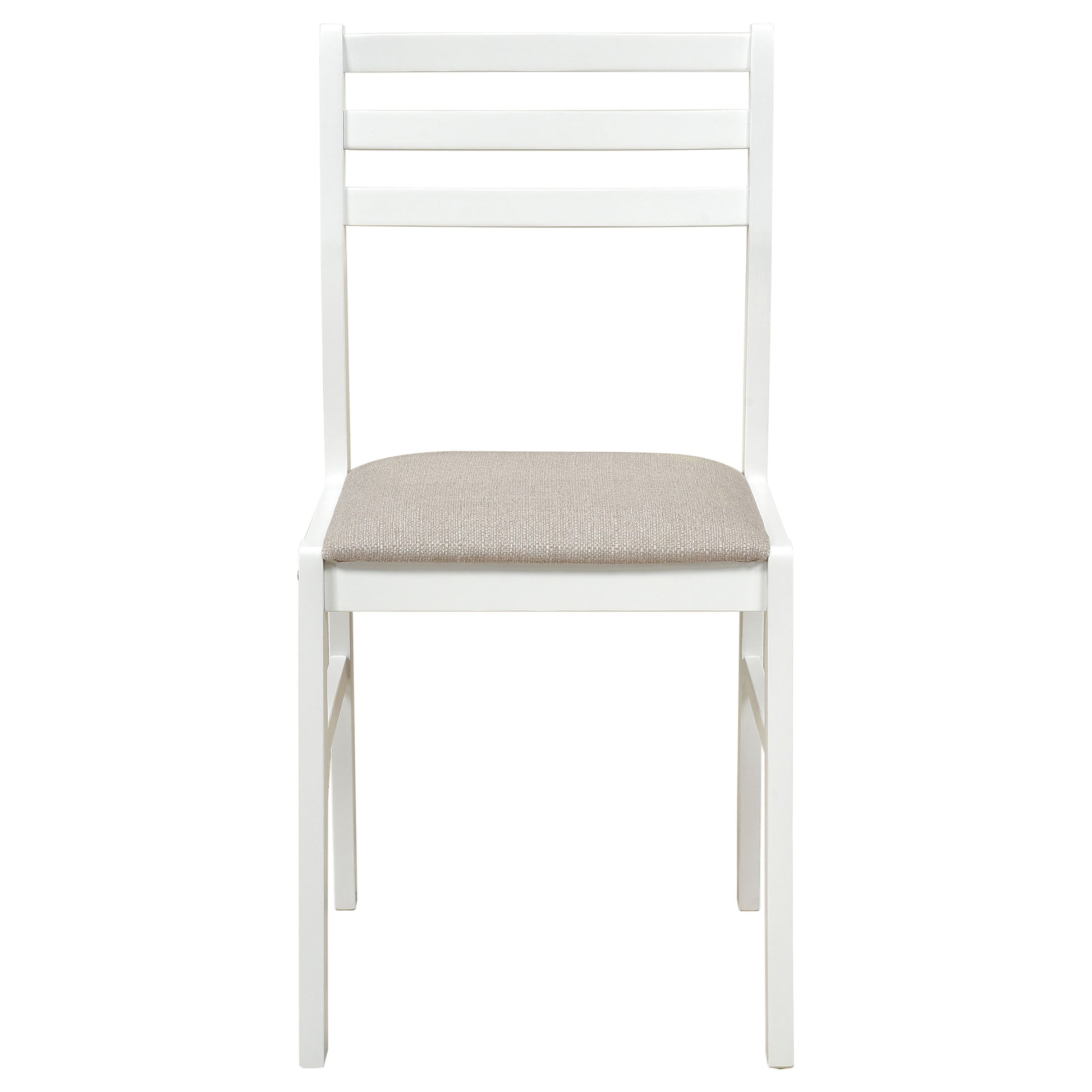 • Chairs include padded seats in beige microfiber for soft texture and easy maintenance