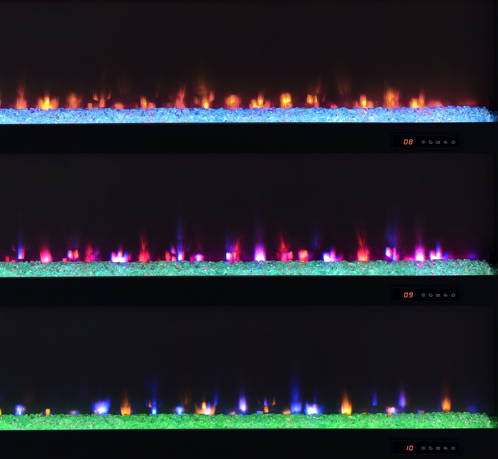 • Fireplace without heat function and features 15 flame color options for ambiance
