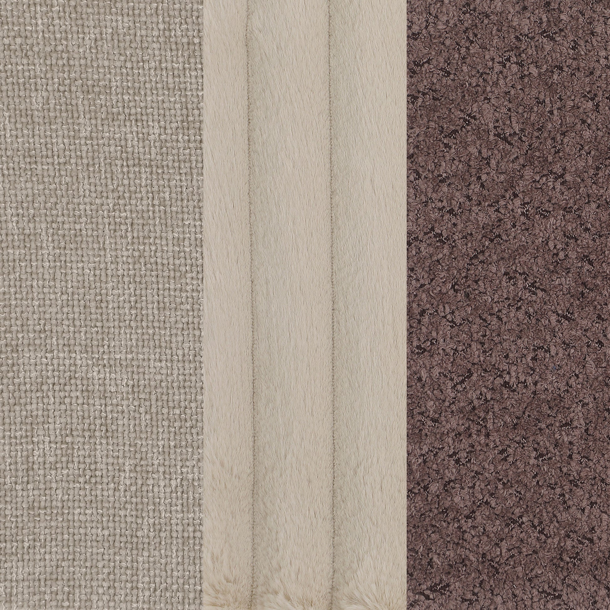 • Soft beige upholstery creates a bright, inviting ambiance for a three-piece modern sofa set