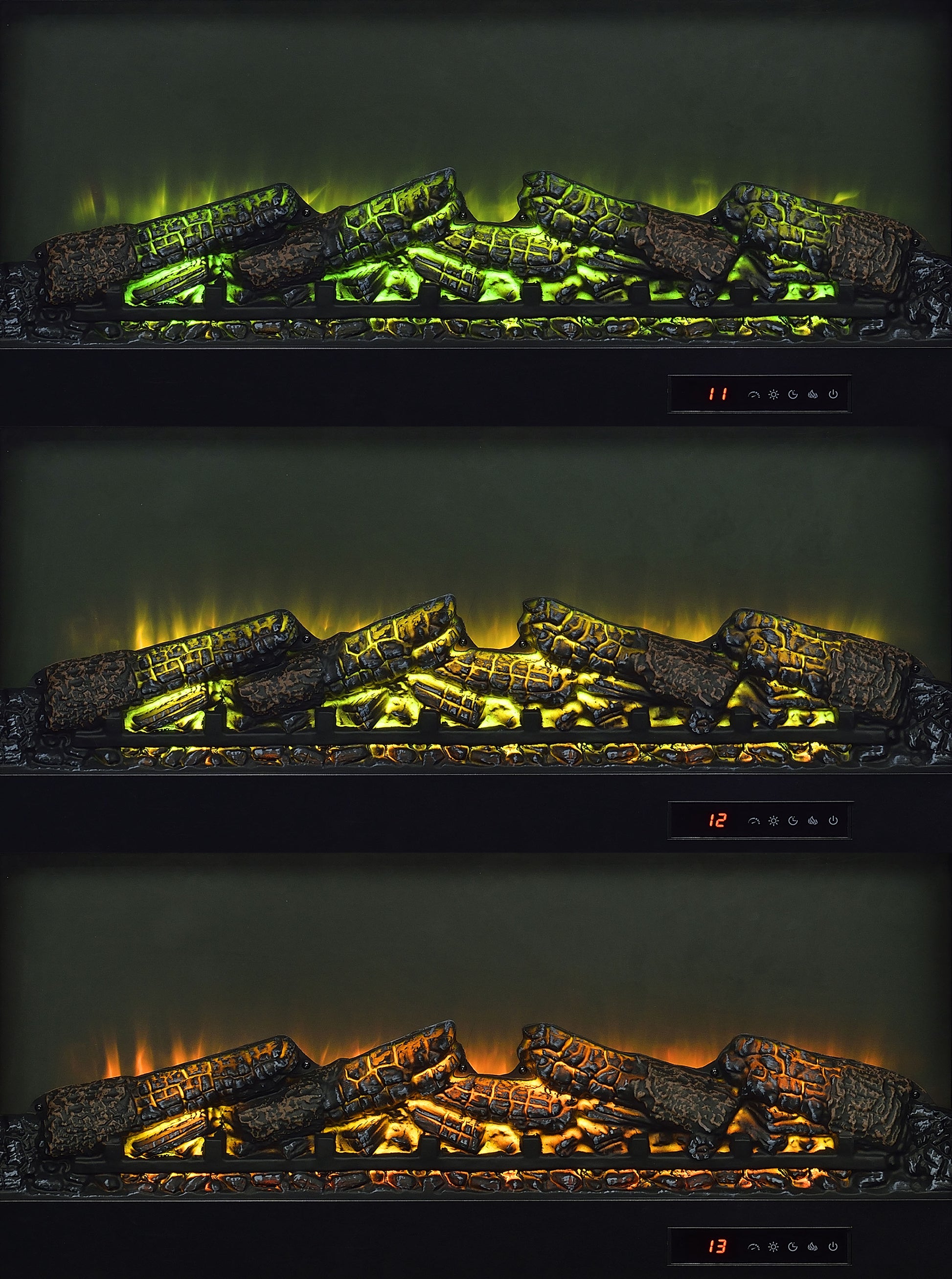 • Center fireplace insert without heat function and glowing ember display for cozy ambiance