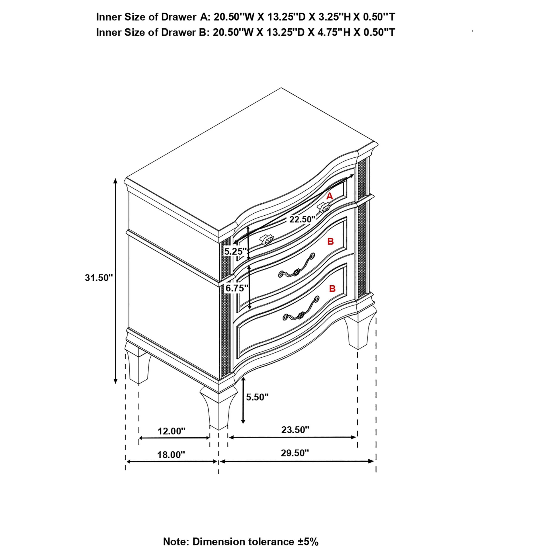 • Three spacious drawers including a top felt-lined drawer for organizing essentials