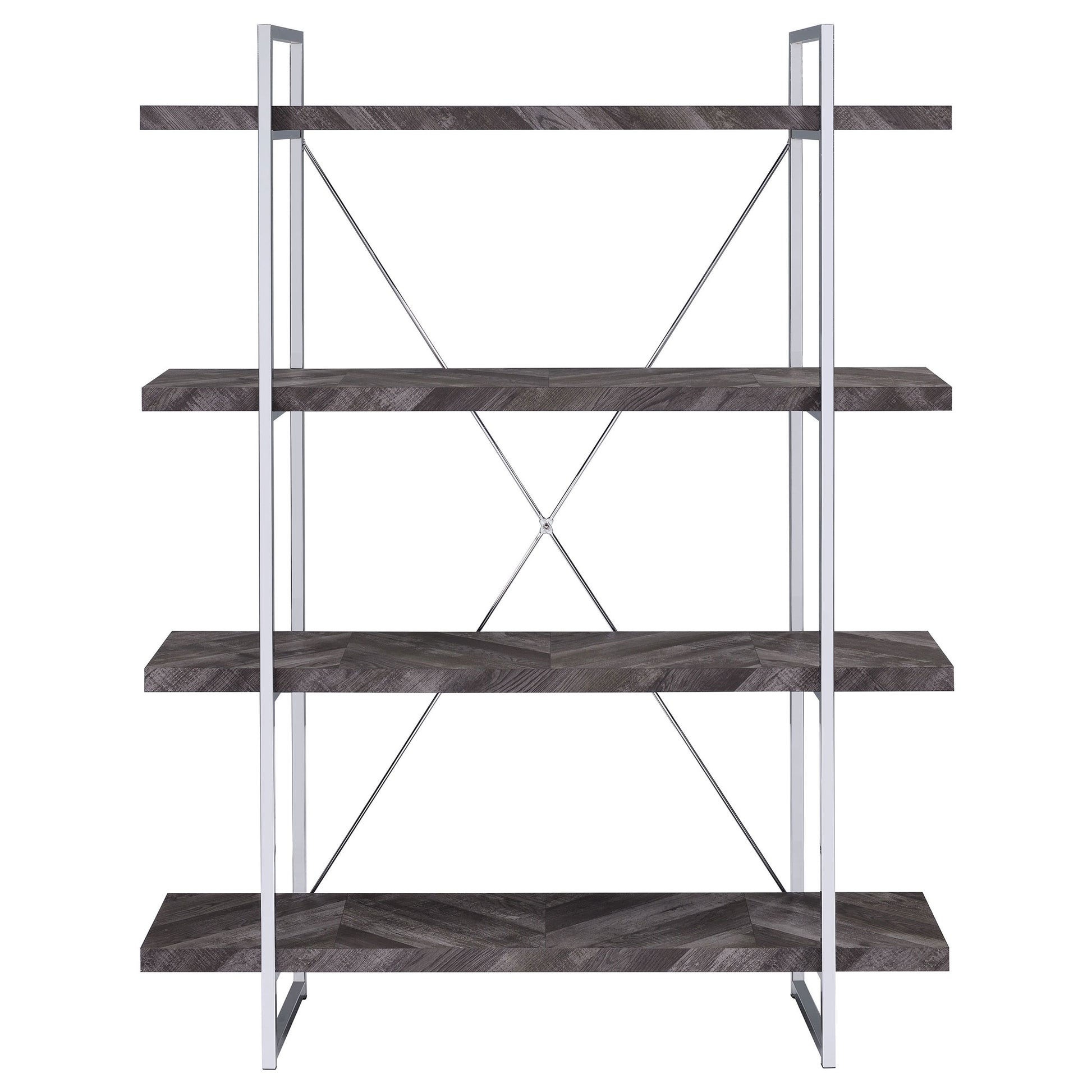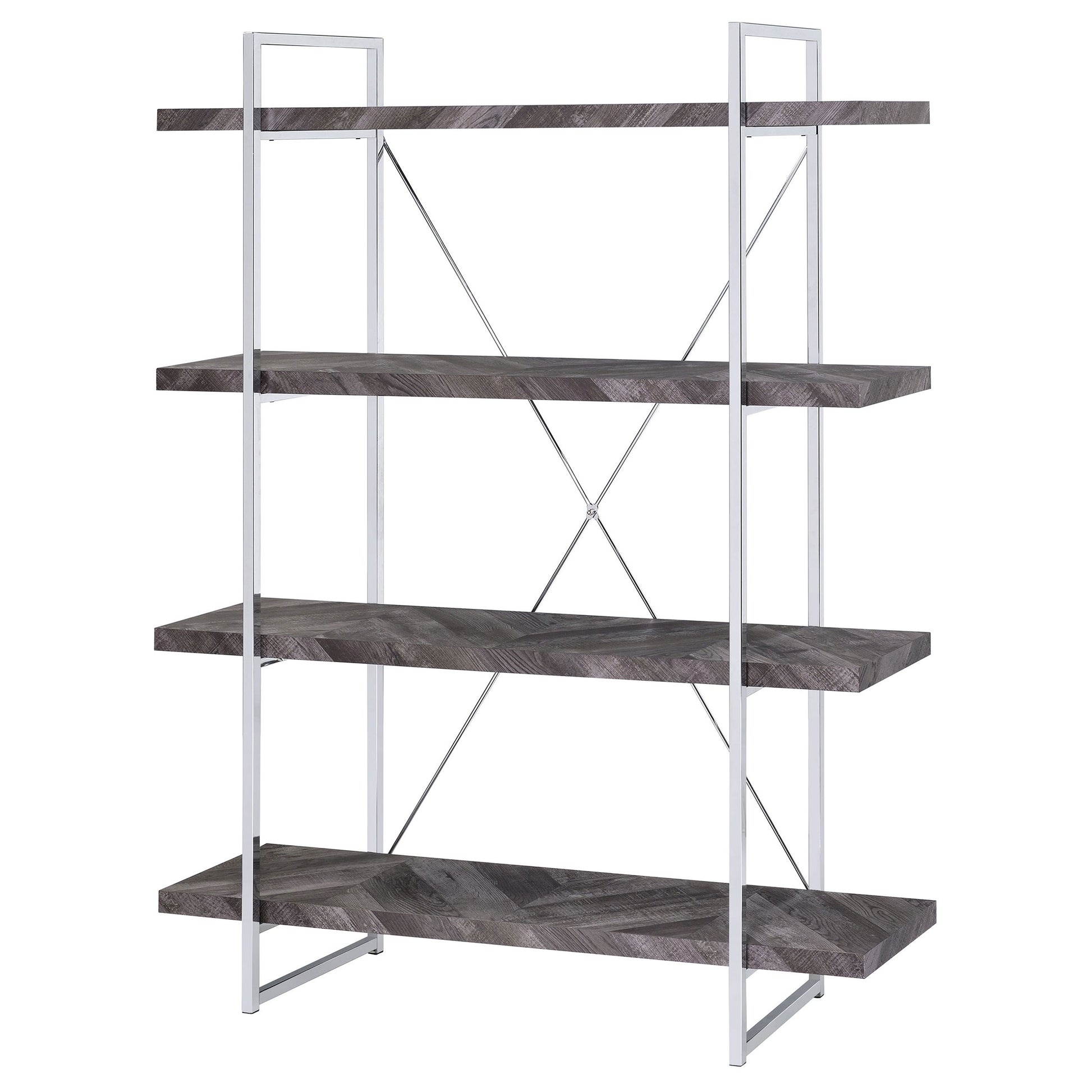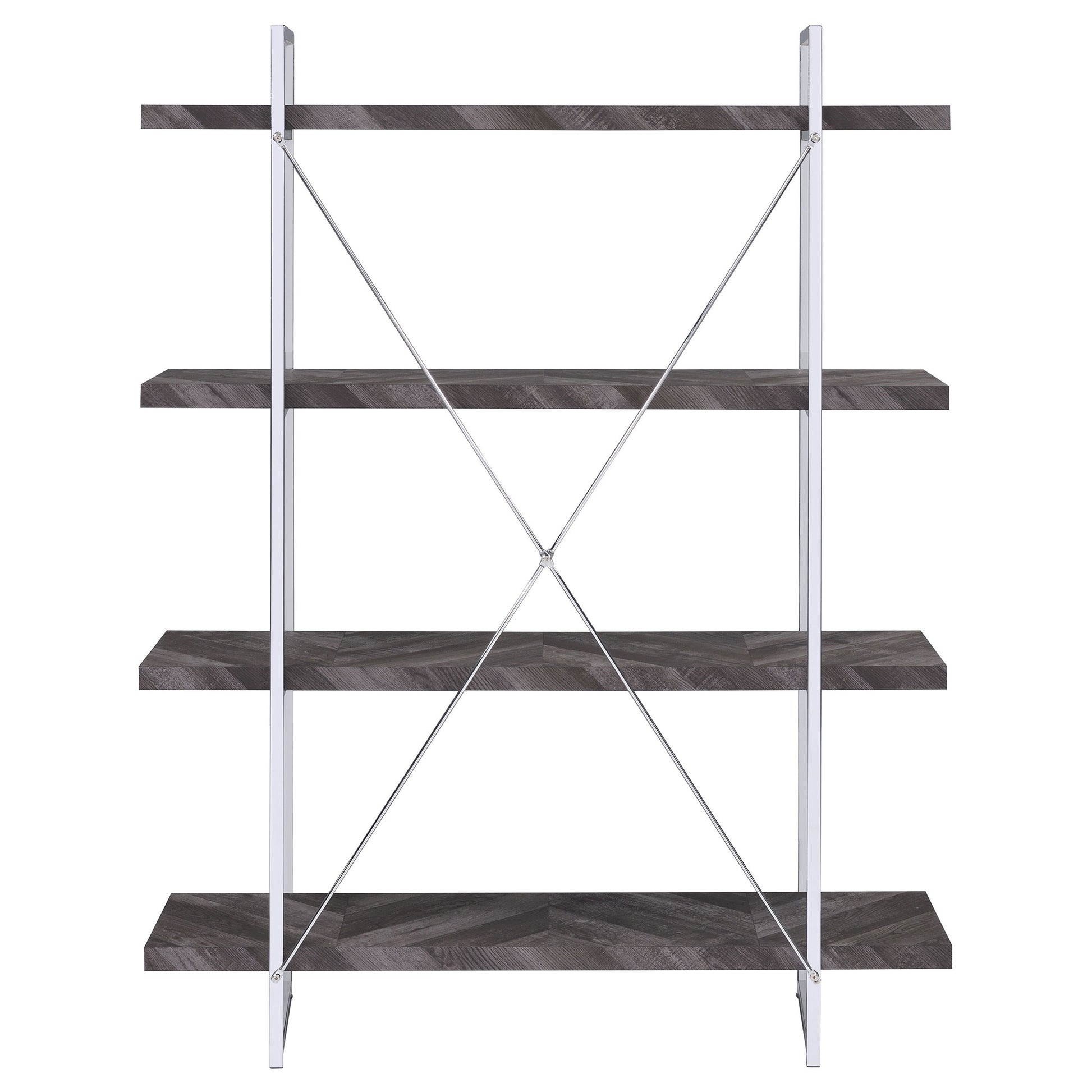 Grimma 63-inch 4-shelf Bookshelf Rustic Grey and Chrome